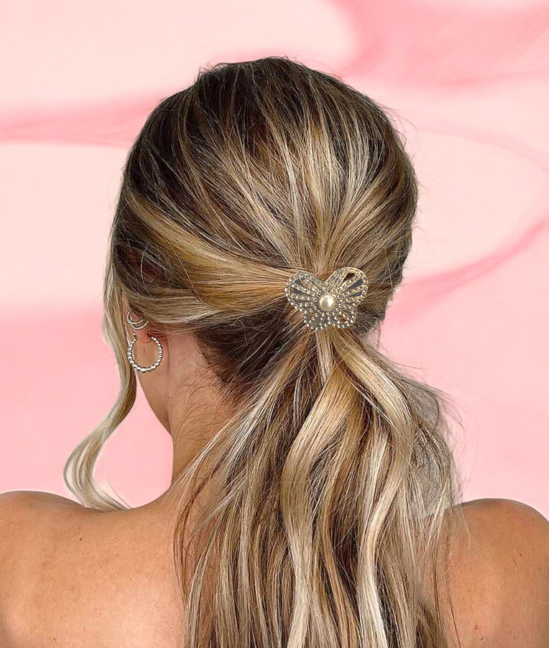 Add a touch of charm and sparkle to your everyday hairstyle with this elegant butterfly hair tie. Designed with a shimmering butterfly accent, it beautifully catches the light — perfect for dressing up a casual look or adding a subtle sparkle to a special occasion.