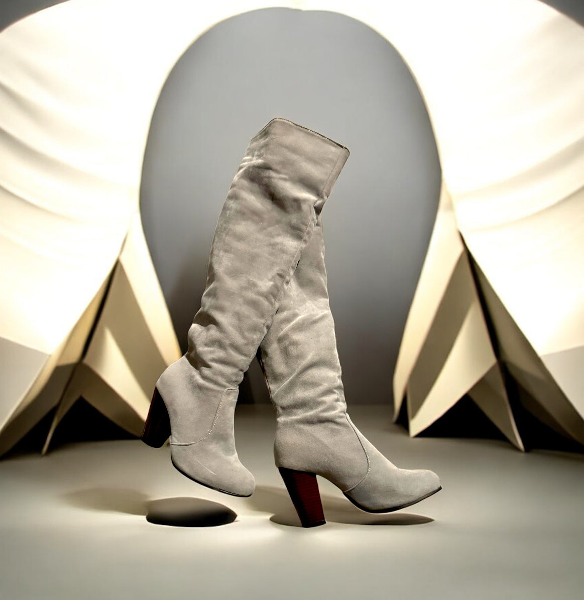 Elevate your style with these over-the-knee gray suede boots for women, designed for a chic, modern look that pairs effortlessly with any outfit. Crafted from soft, premium suede, these tall boots offer a smooth, flexible fit that flatters the legs while keeping you comfortable throughout the day.