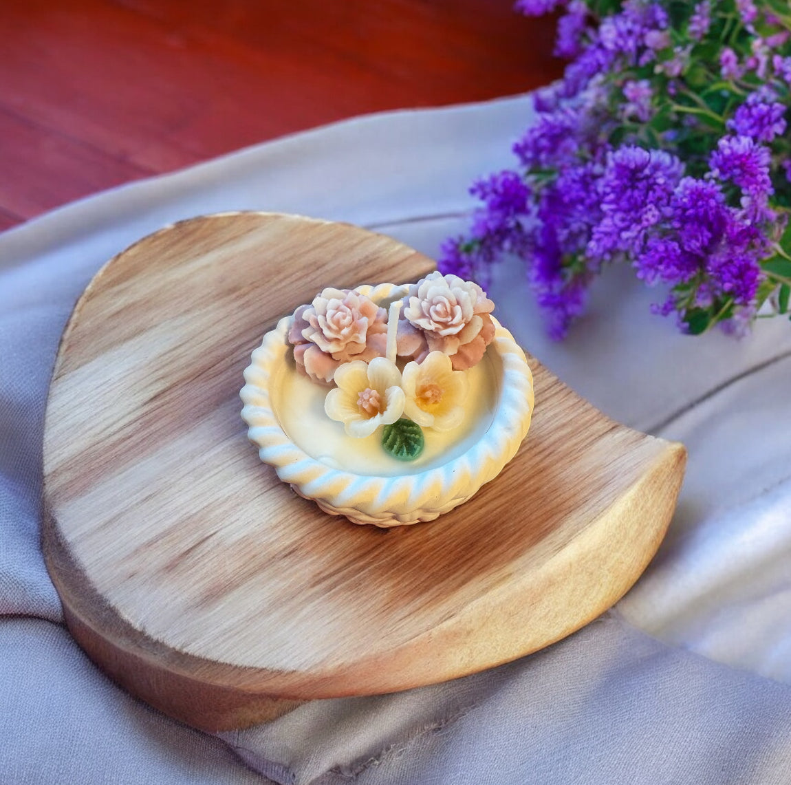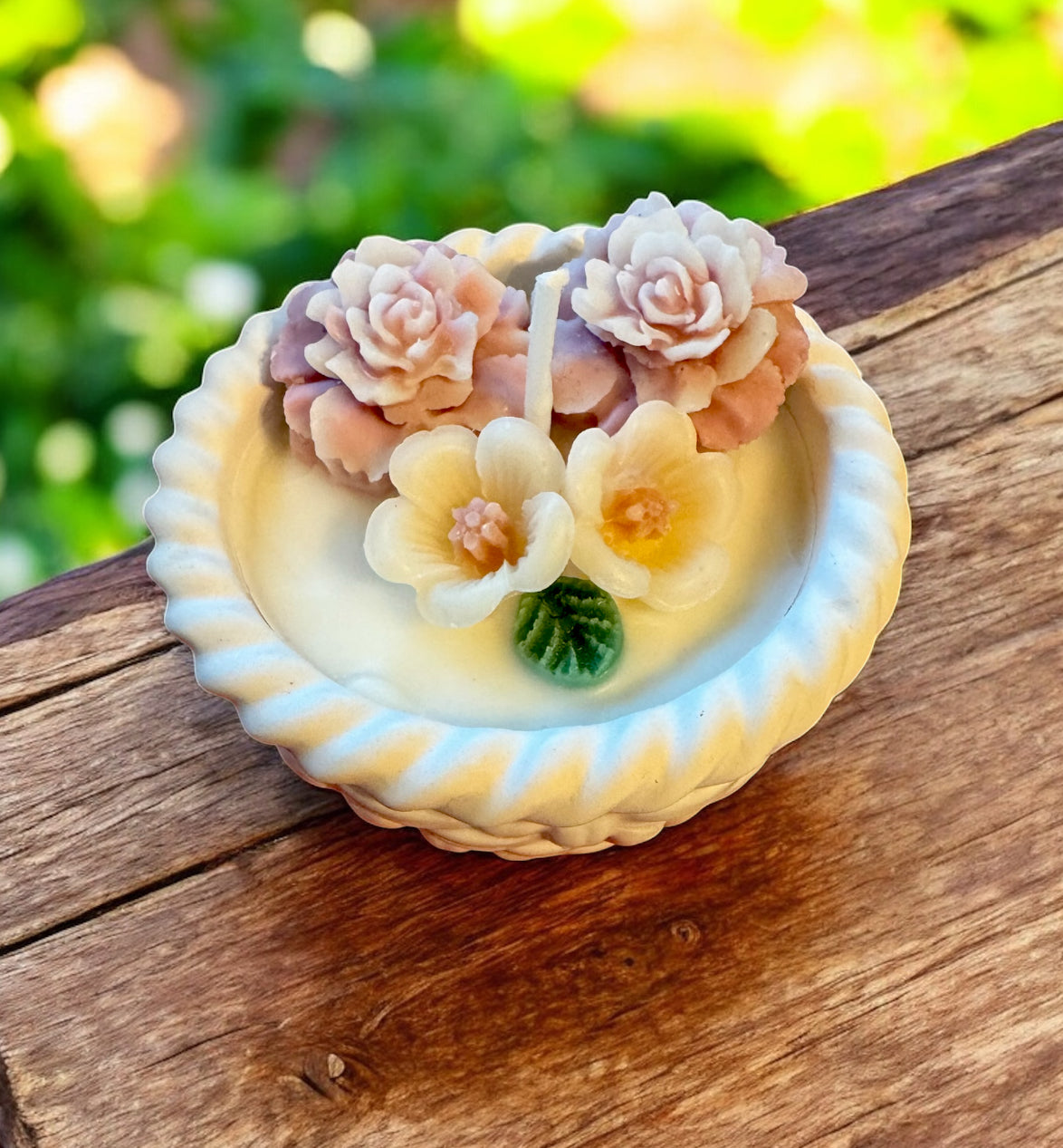 Flower Beeswax Candle in Handmade basket Pot