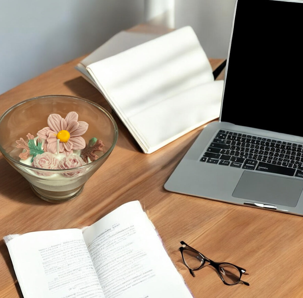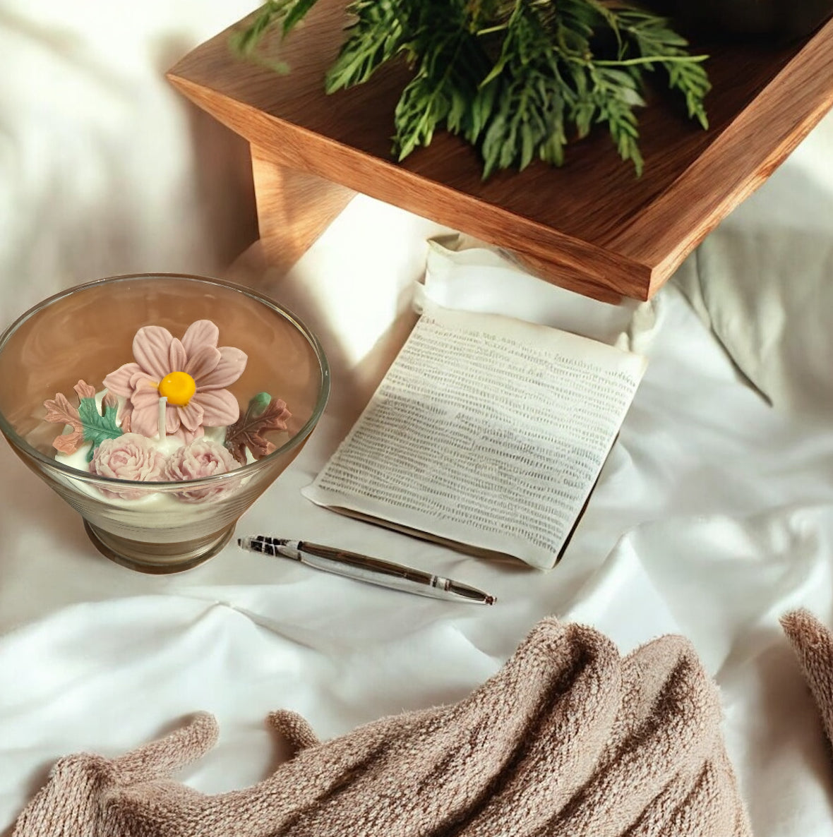 Illuminate your space with the soft glow of this floral beeswax candle—a perfect blend of elegance, nature, and craftsmanship.