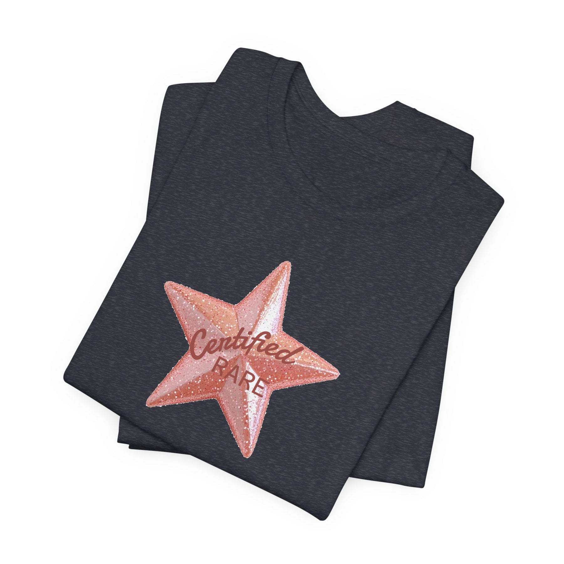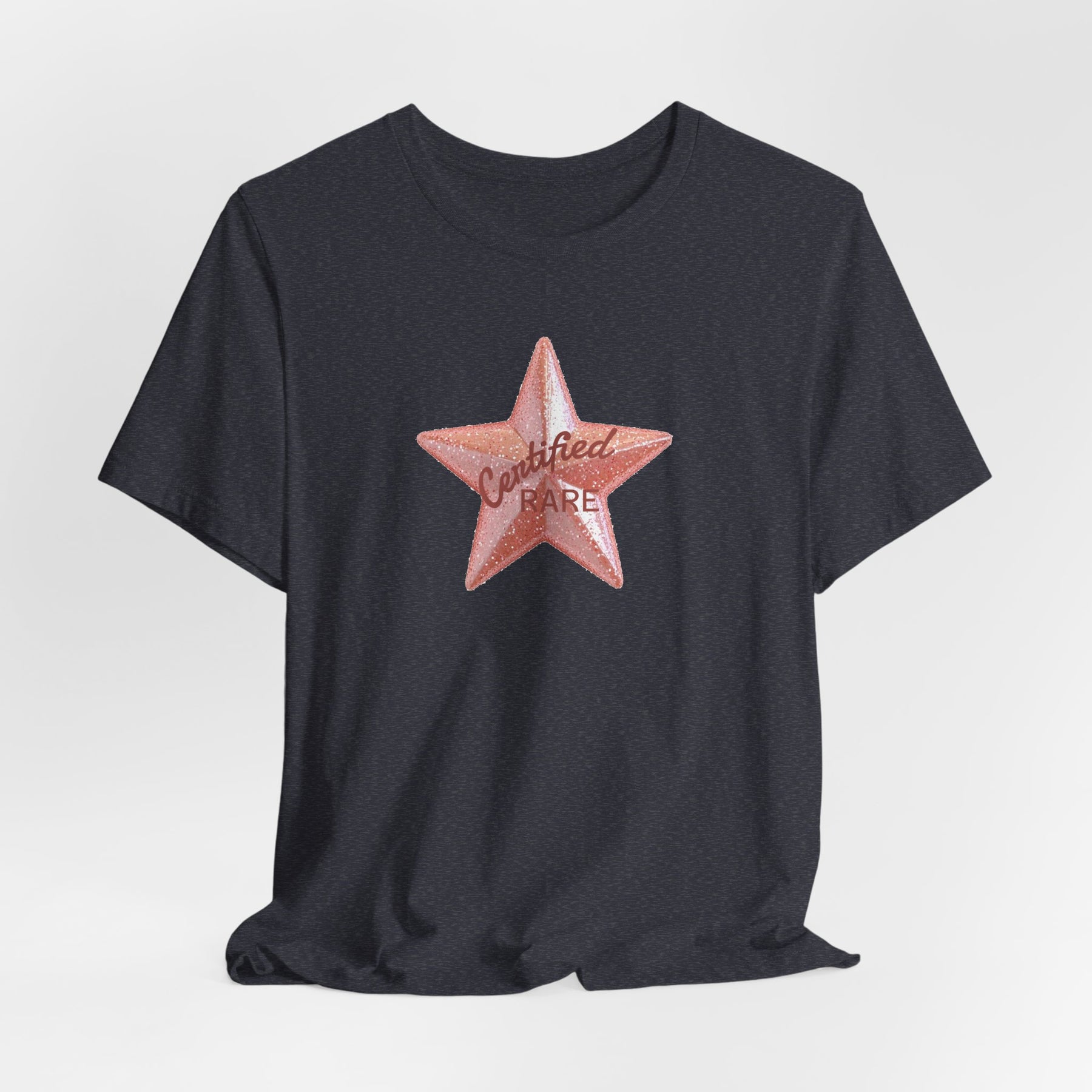 This lightweight tee carries a single, bold word: certified rare. It reads like a quiet badge—an inside signal for collectors, curators, and people who lean into scarcity as style. Wear it with a worn denim jacket, a folded cuff, or layered under an open flannel. The shirt sits close enough for clean lines but keeps movement easy, so it slips into everyday routines: morning coffee runs, record-store dives, gallery openings with friends. The phrase feels like a wink to those who seek out limited runs, one-of-a-kinds, and small-batch finds. It adds a small, confident statement without shouting—subtle pride for things that matter to you.