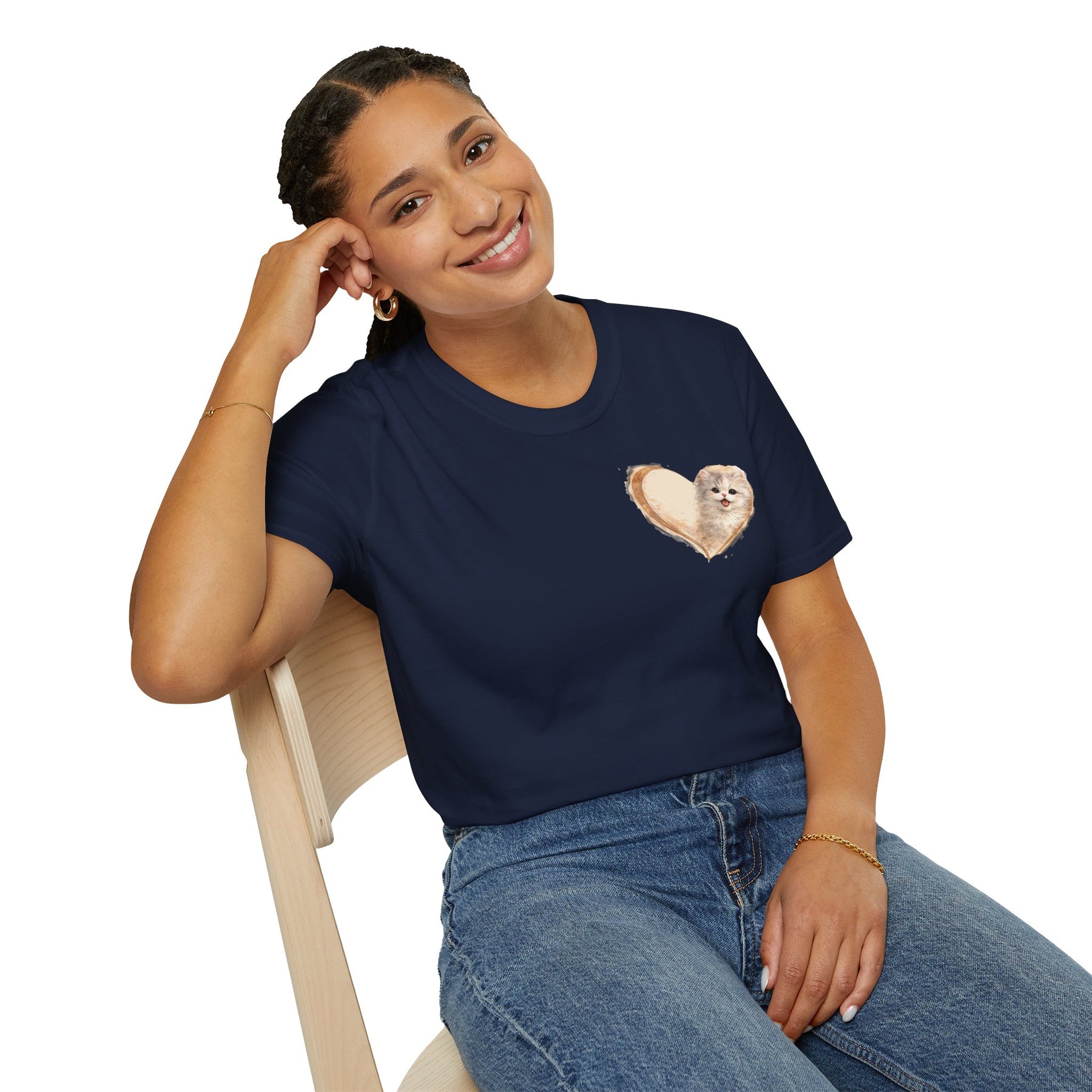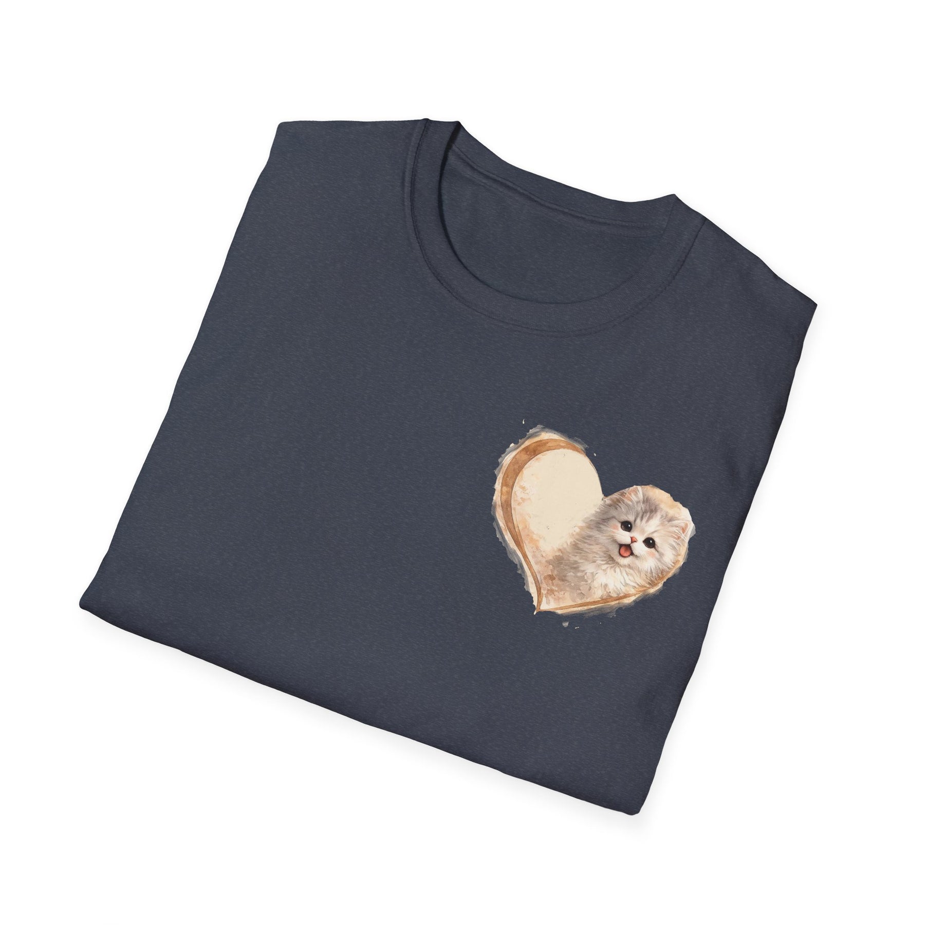 A soft, everyday tee that carries a small, personal declaration: kitty lives here. Lightweight and breathable, this shirt settles like a gentle hug while a simple "Kitty in my heart" design keeps your love for your feline companion close to your chest. Wear it on slow mornings with coffee and a purring cat on your lap, on neighborhood walks with a jingling collar, or when you need a quiet reminder of the calm and mischief a cat brings into the home. The feel is lived-in but refined — the kind of shirt you pull on when you want comfort without losing a little bit of personality.