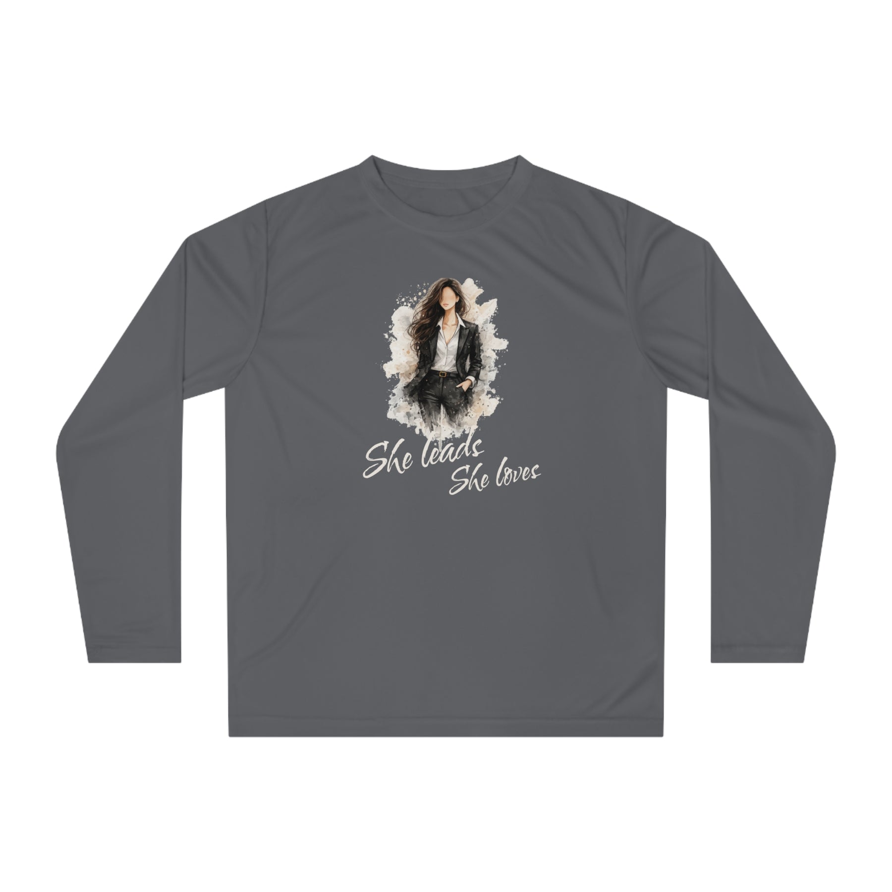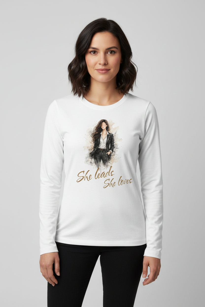 She leads, she loves Long Sleeve Shirt — Stylish Portrait Graphic