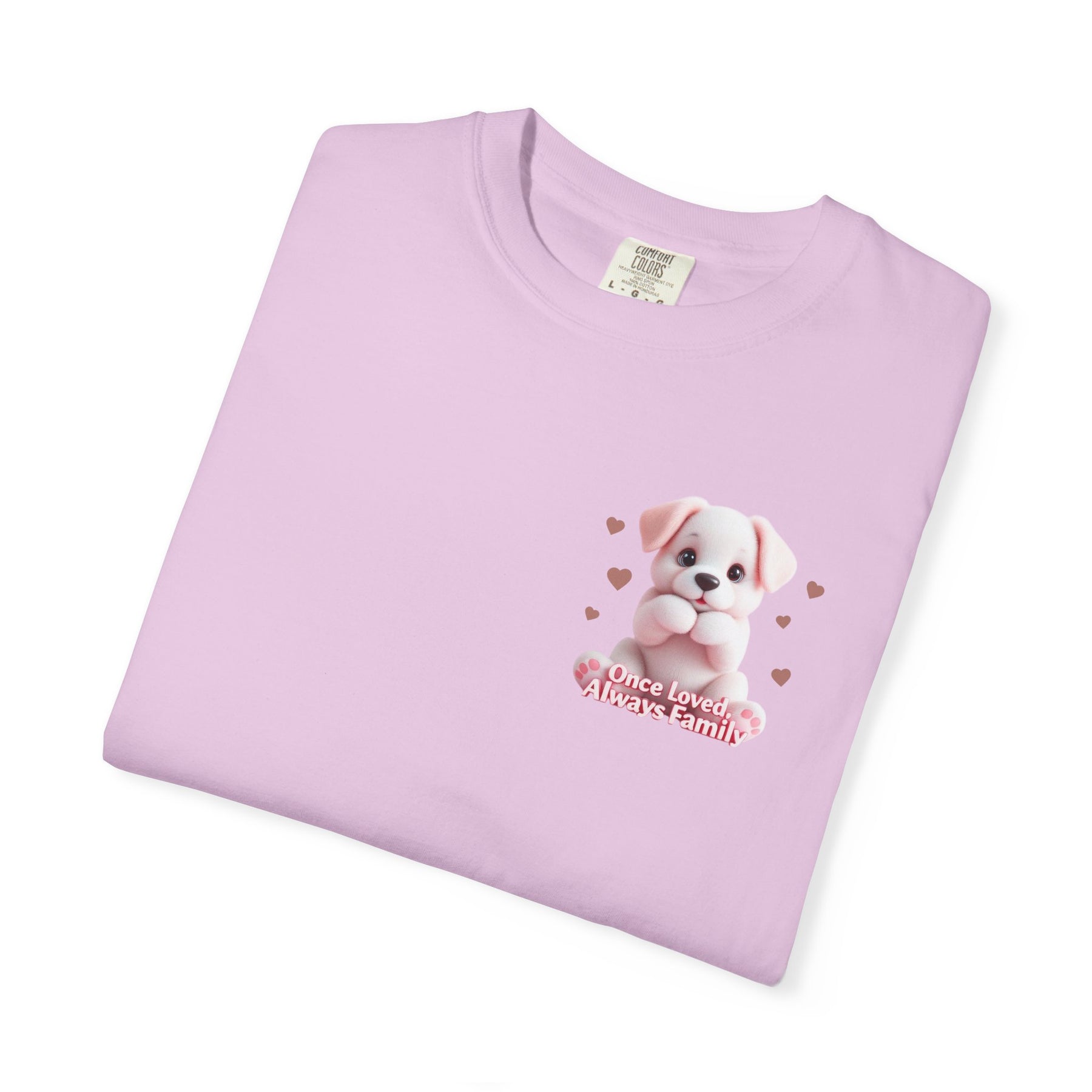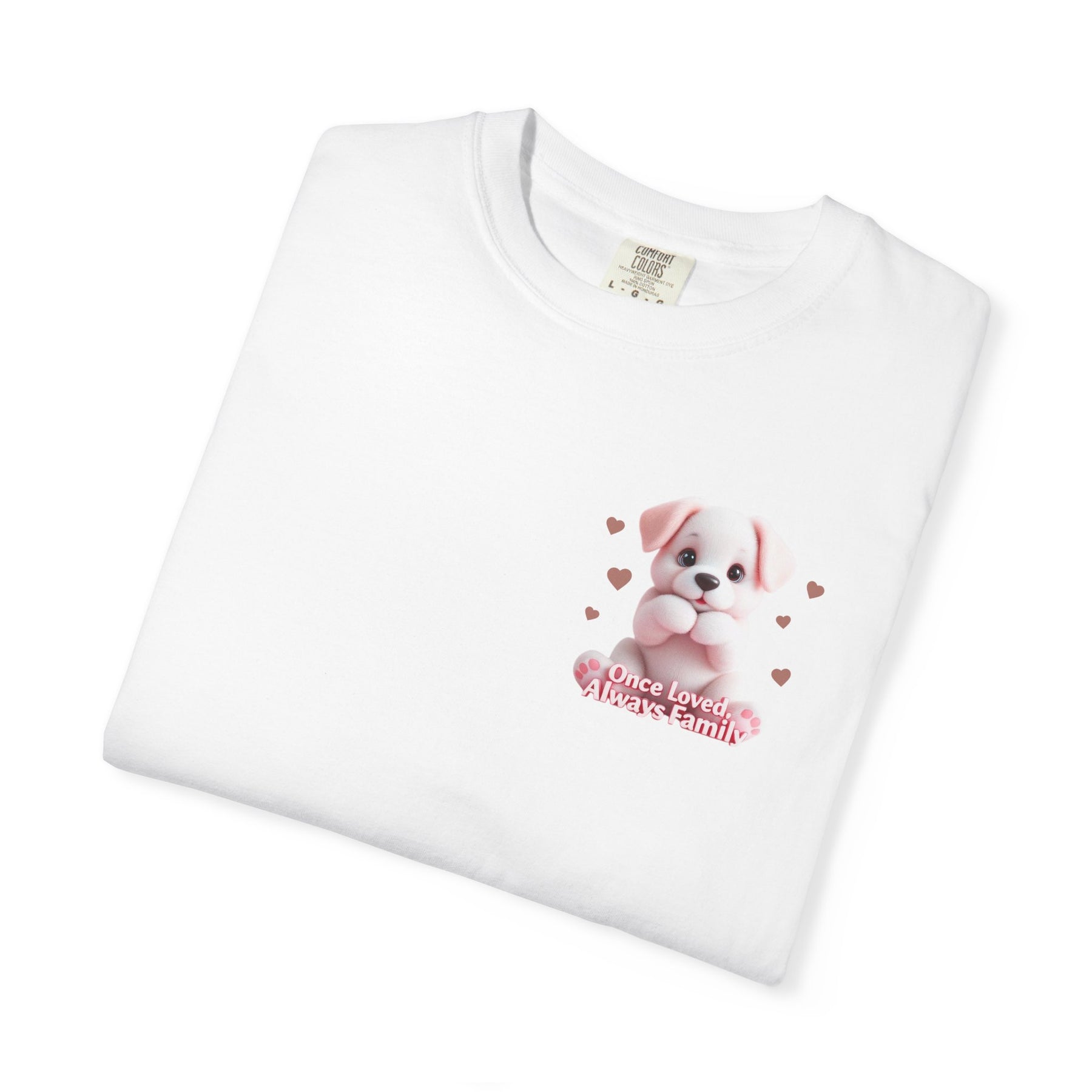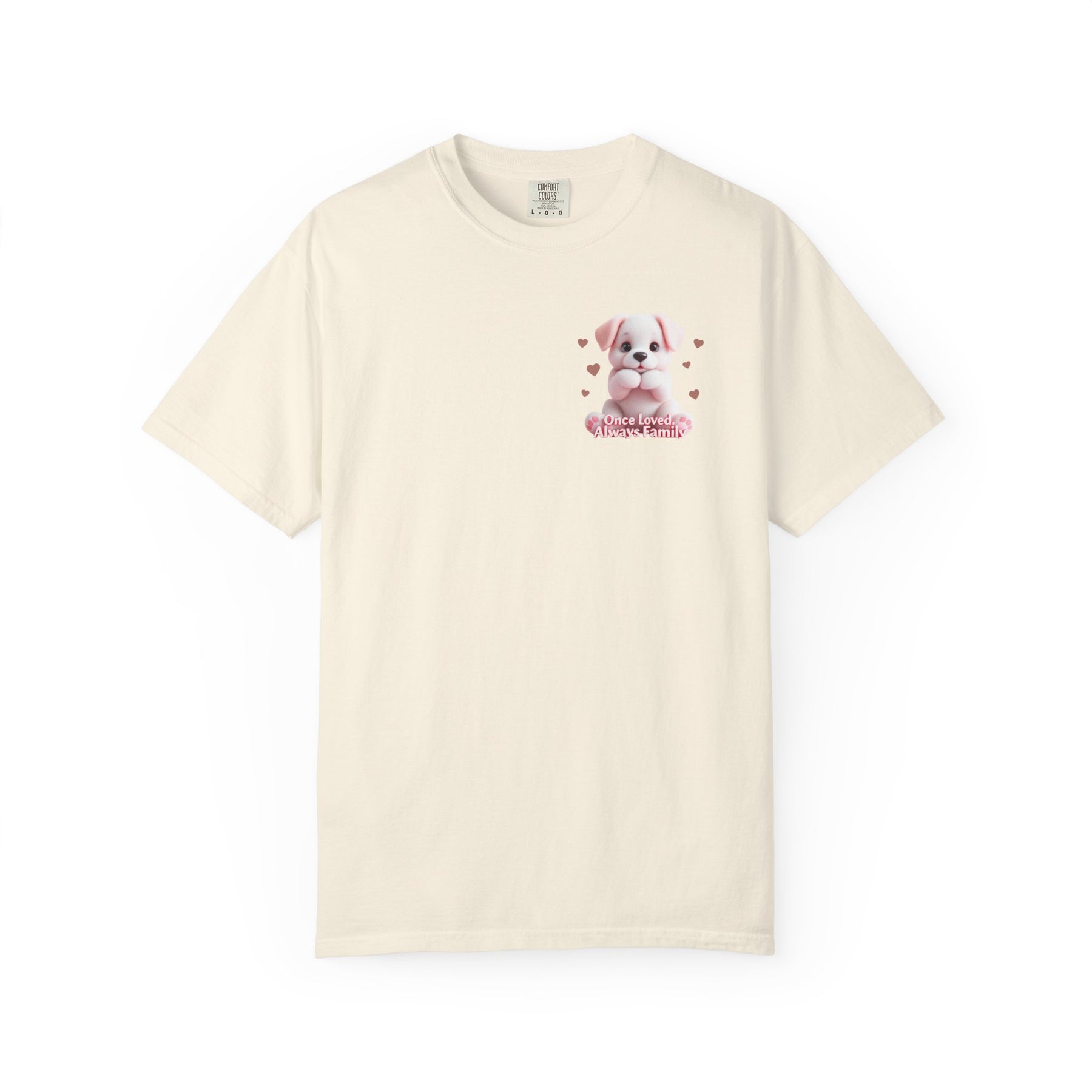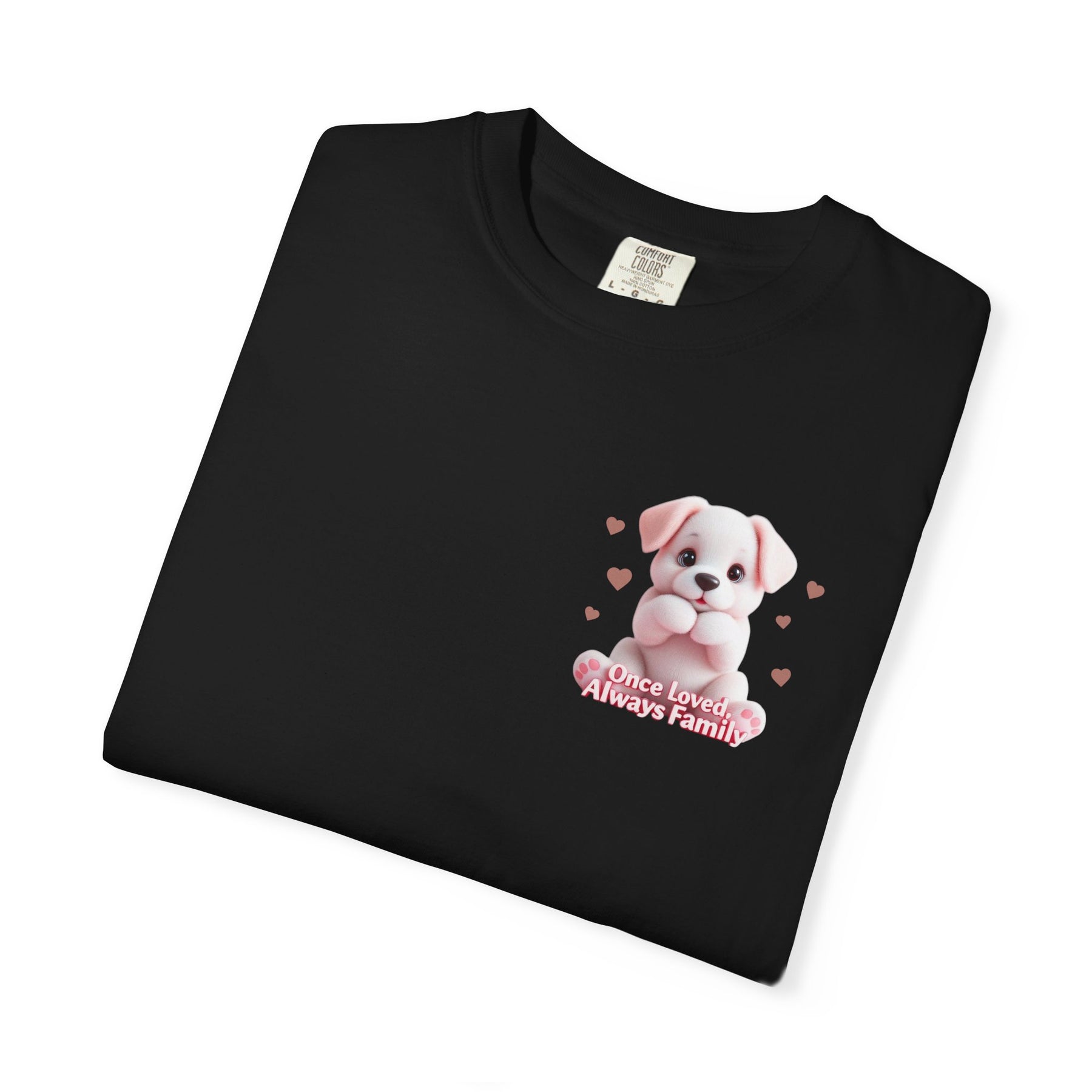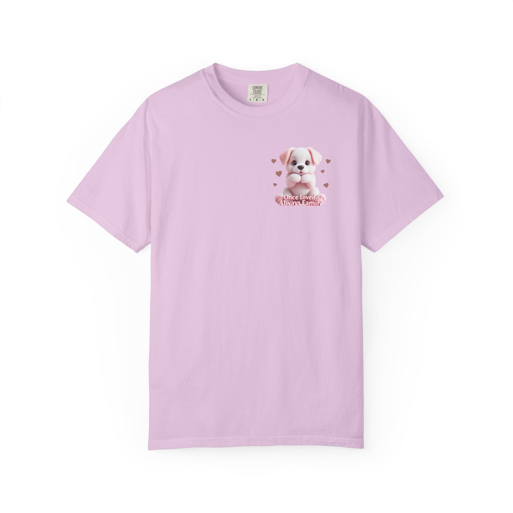 This heavyweight, garment-dyed tee feels like a worn-in hug from the moment you slip it on. The phrase “once loved, always be family” sits quietly like a worn-in promise — gentle, steady, and full of memory. It’s the kind of shirt you reach for when you want comfort that carries meaning: weekend coffee on the porch, late-night kitchen conversations, or a road trip playlist and open windows. The soft, muted color from the garment-dye process gives each piece subtle depth, while the relaxed cut lets it layer easily over a flannel or under a favorite jacket. For people who collect moments and keep them close, this T-shirt keeps the sentiment visible without shouting — familiar, comfortable, and personal.