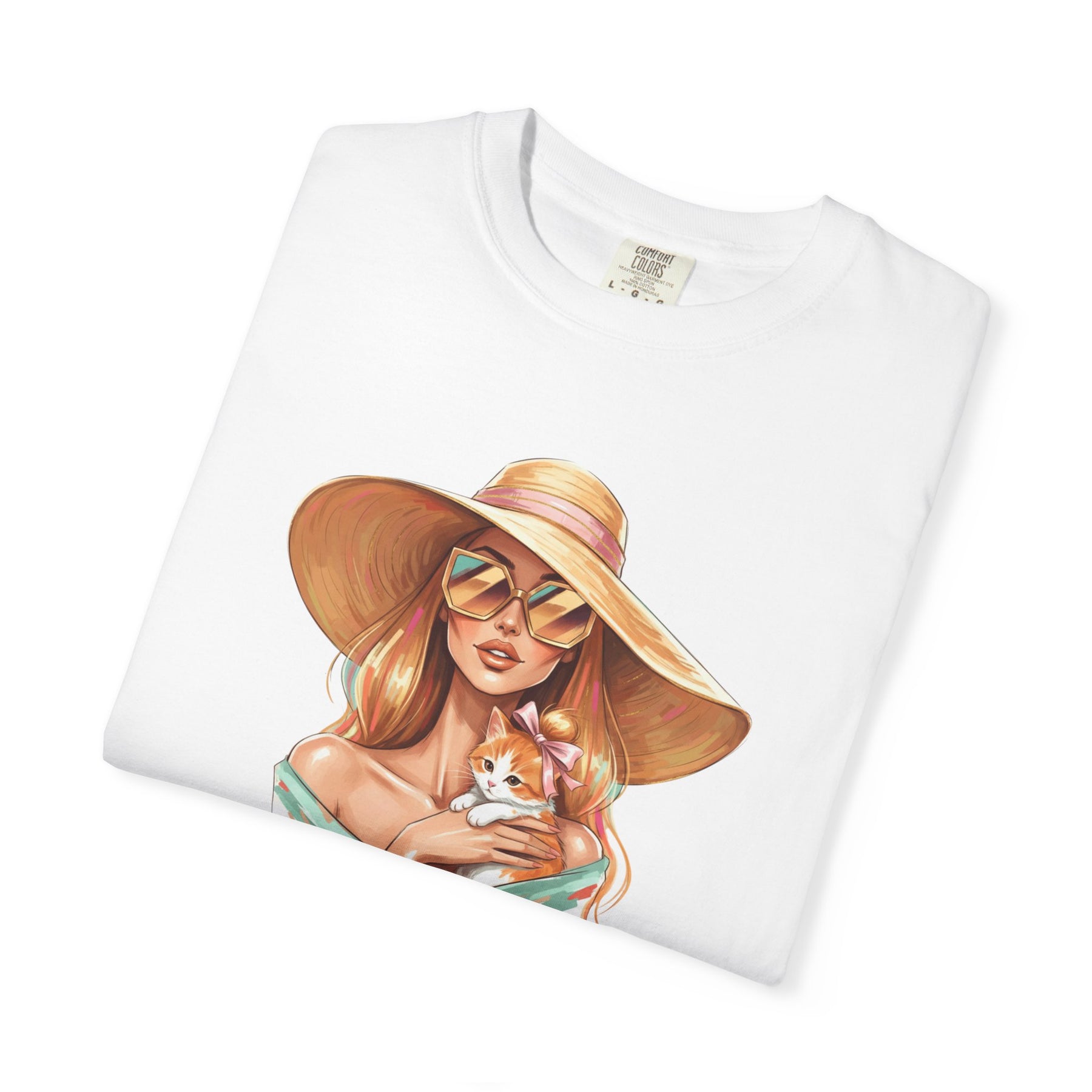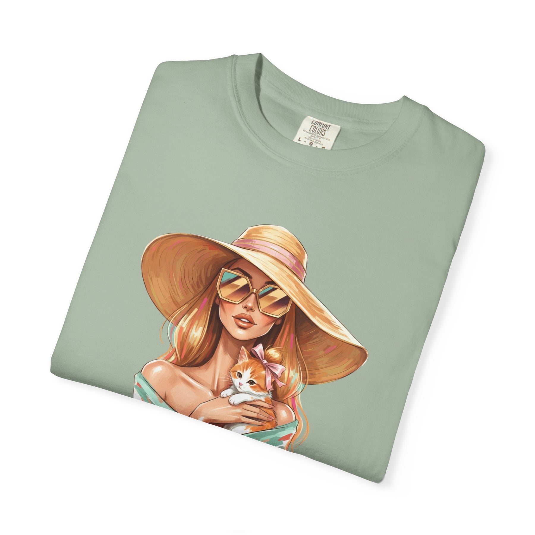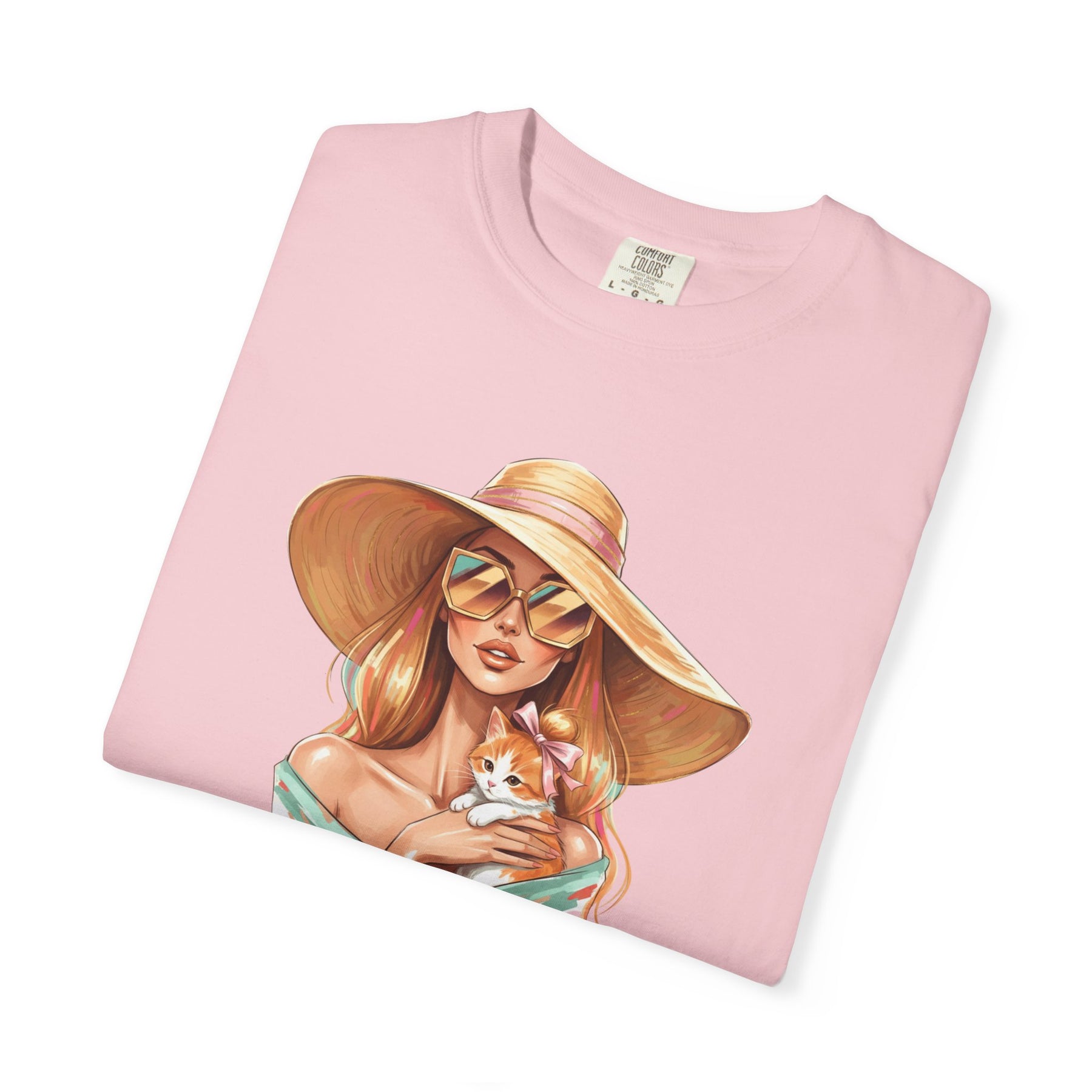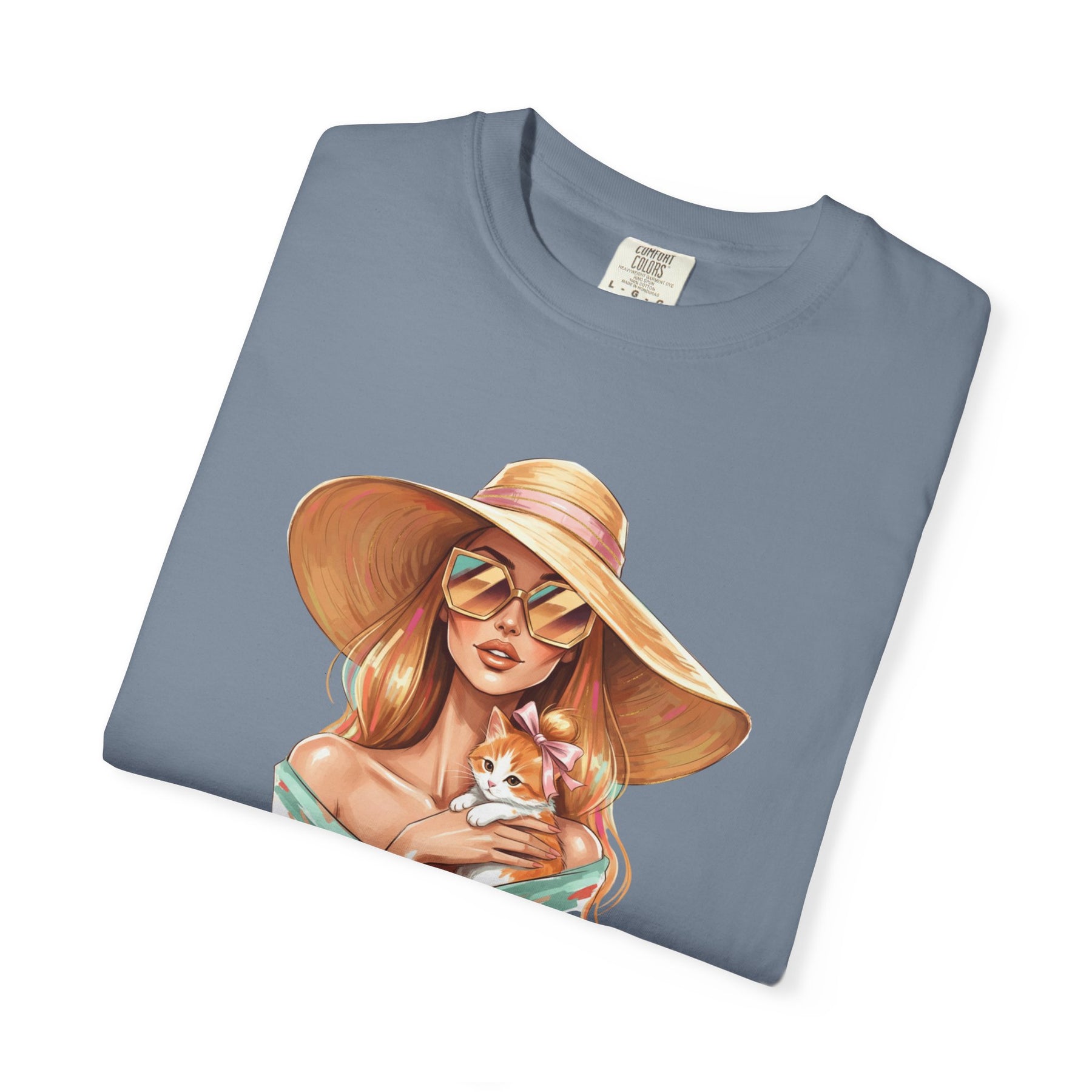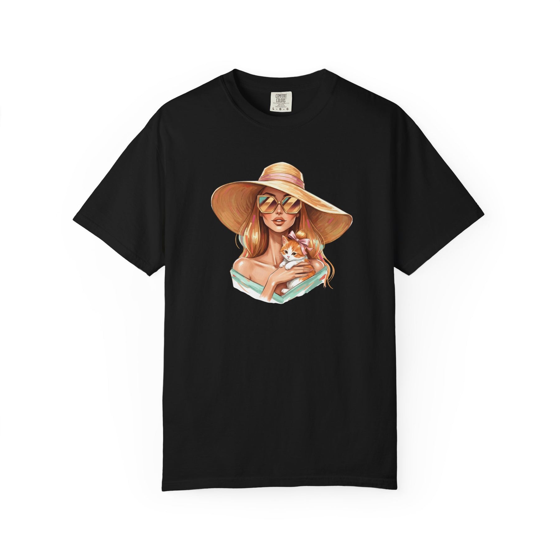 A relaxed, garment-dyed tee that celebrates effortless style with a playful twist: a fashion icon cradling a cat. Soft, lived-in color and heavyweight cotton give this shirt a comforting weight — the kind you reach for on slow mornings and city nights alike. Picture an editorial silhouette softened by an affectionate feline, the graphic balancing chic lines with a wink of warmth. Wear it to gallery openings, coffee shop hangs, or while sketching ideas at home; it reads like a quiet declaration of taste and tenderness. The relaxed cut and substantial fabric settle nicely on the body, while the garment-dyed finish and tubular knit create a vintage, slightly faded look that blends into your wardrobe rather than shouting over it. This tee speaks to people who value curated looks that still feel personal — those who pair thoughtful design with everyday comfort.