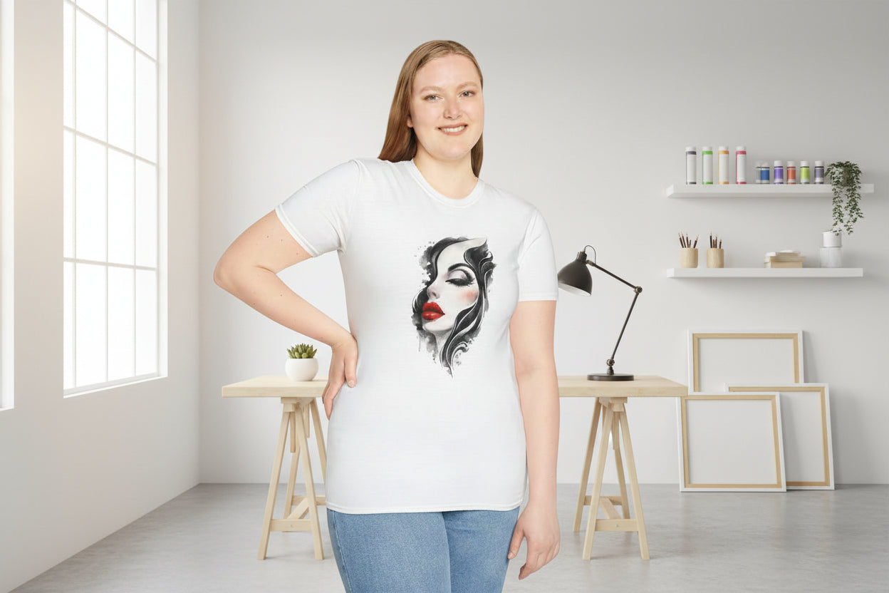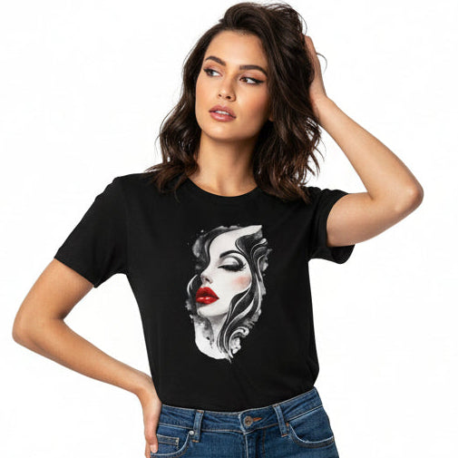 A soft, breathable tee that brings confidence without shouting. This lightweight crew-neck sits close to the body in a classic cut, letting the close-up female portrait design take center stage. Wear it layered under a jacket for a gallery night or alone on warm afternoons—its smooth, durable knit holds print detail beautifully and feels gentle against the skin. The subtle natural fleck option adds an organic, lived-in character to the image, while reinforced shoulders and a resilient ribbed collar keep the tee looking and fitting right after many wears. For adults who appreciate thoughtful, minimalist style and artful imagery, this shirt slips into everyday life and quiet moments with equal ease.