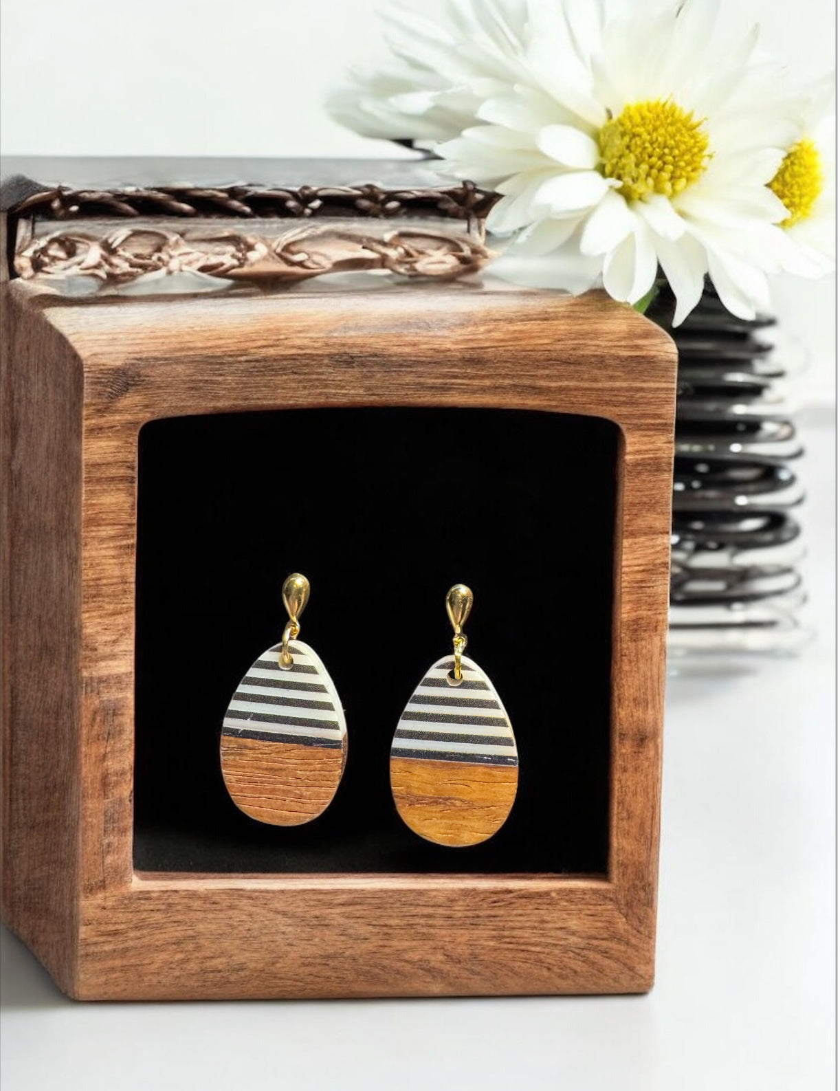 Wood and resin minimalist earrings