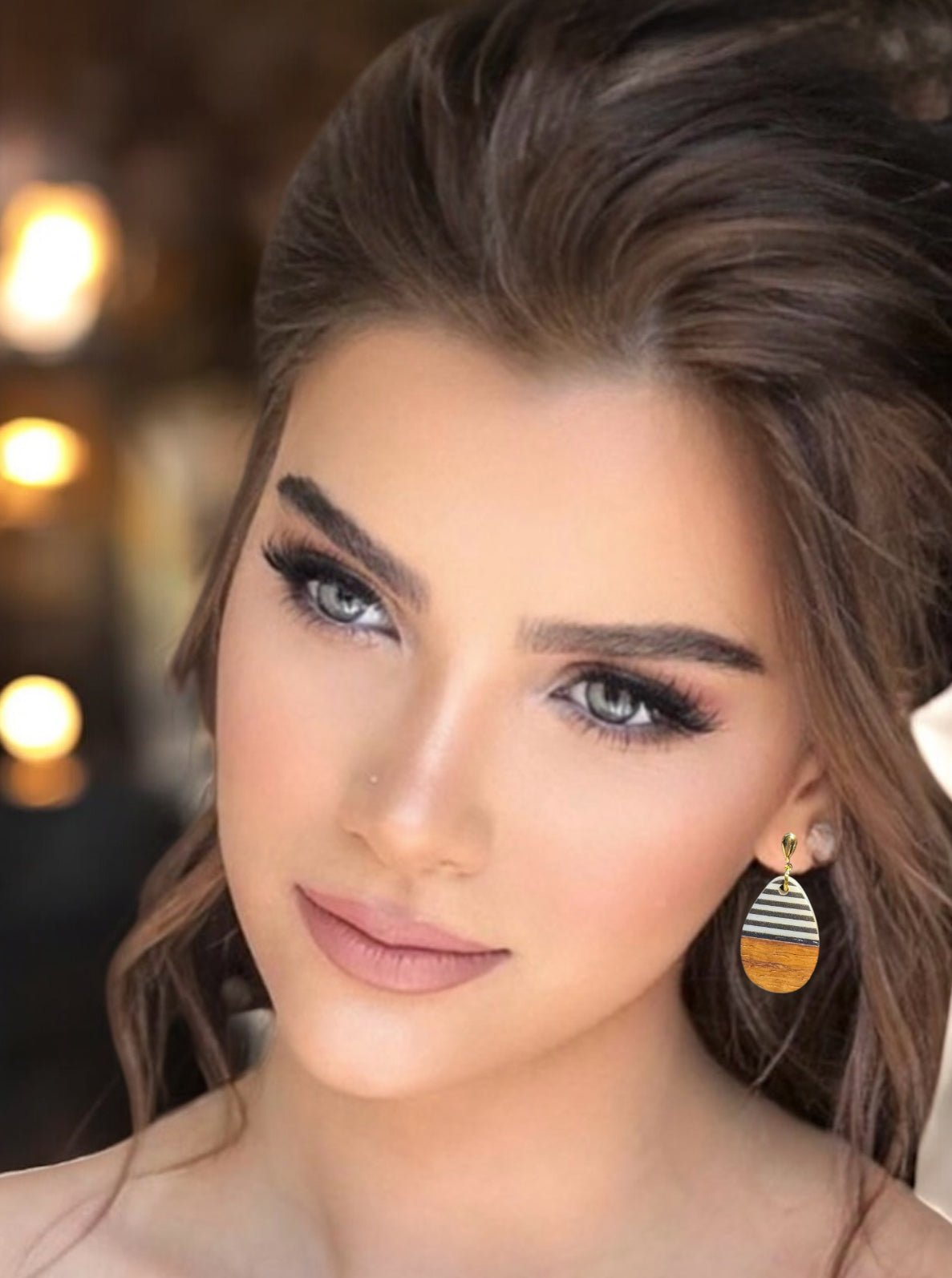 • Style: Round Resin & Wood Dangle Earrings