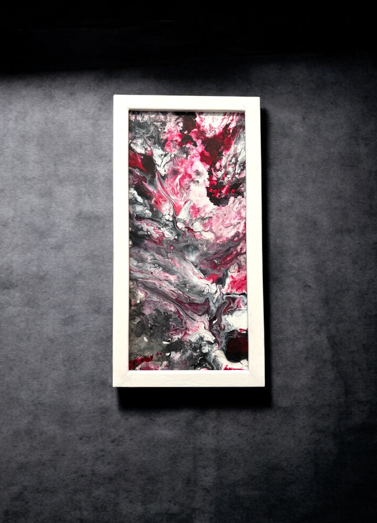 Bring bold emotion and modern elegance to your space with this original abstract painting, beautifully framed in a crisp white wood frame.