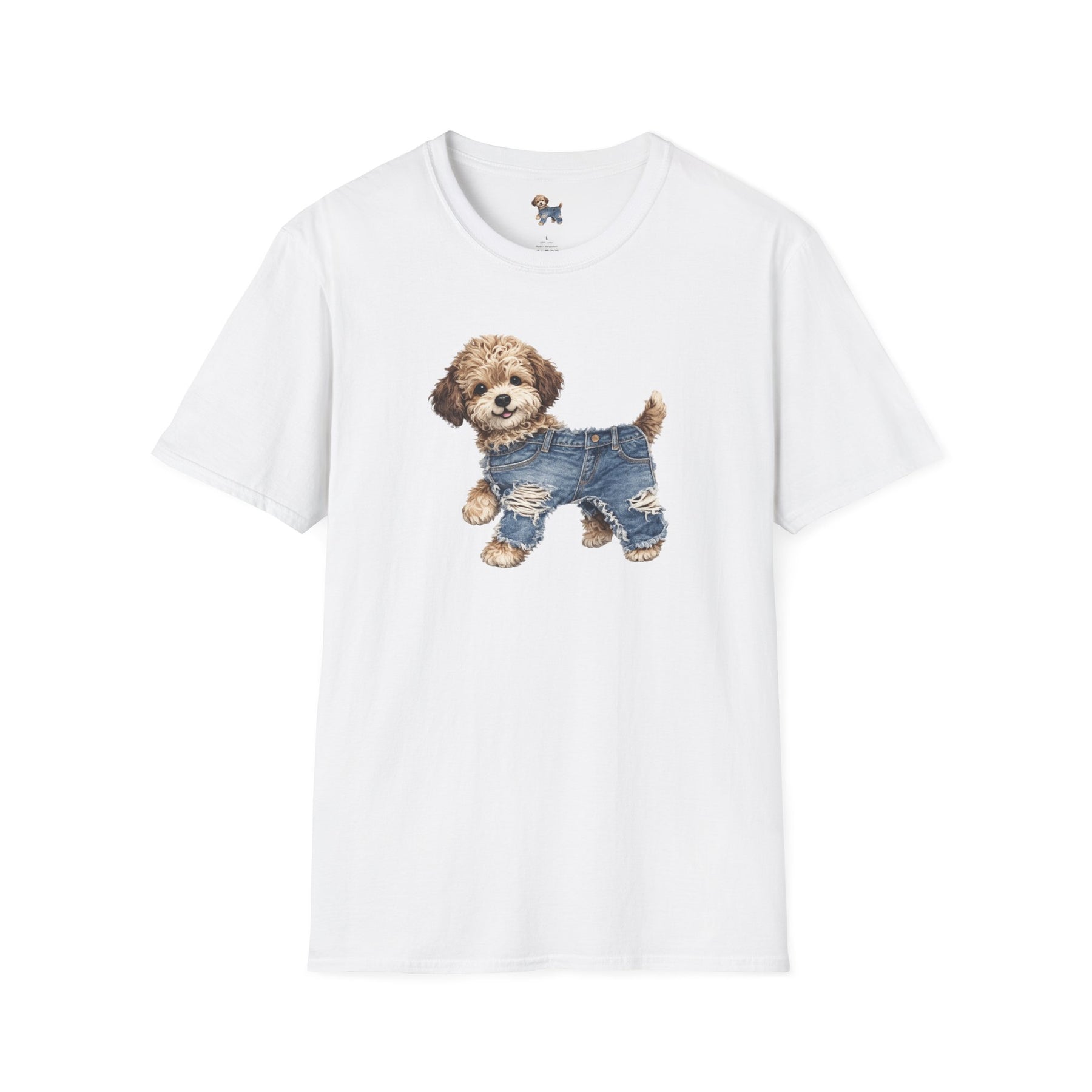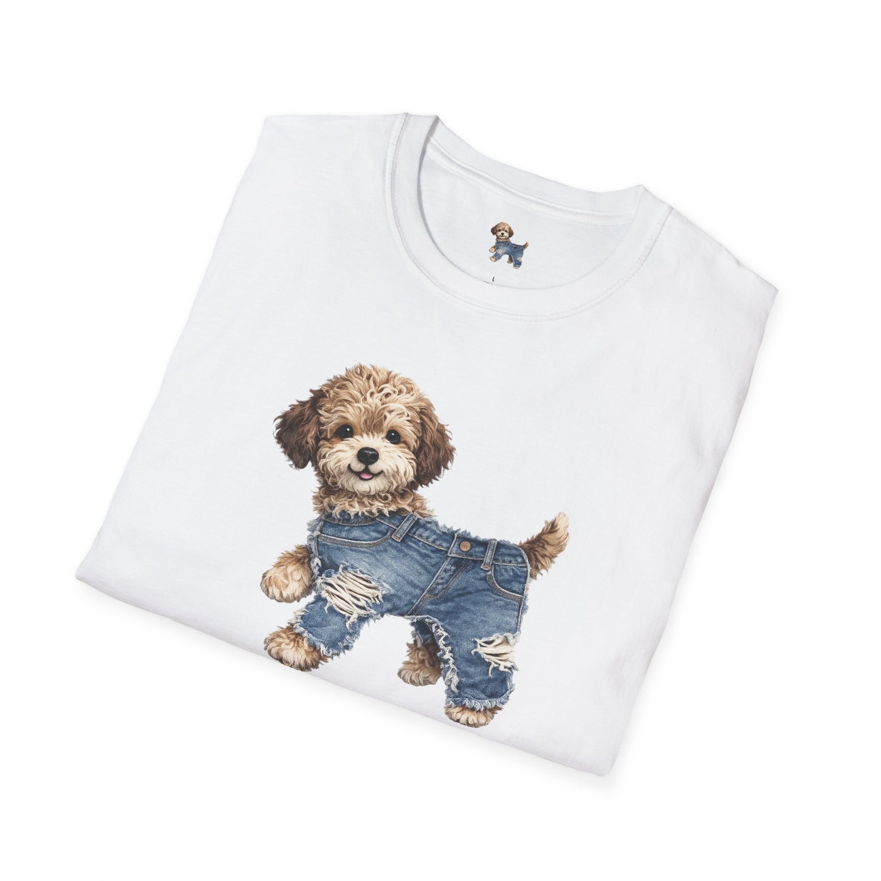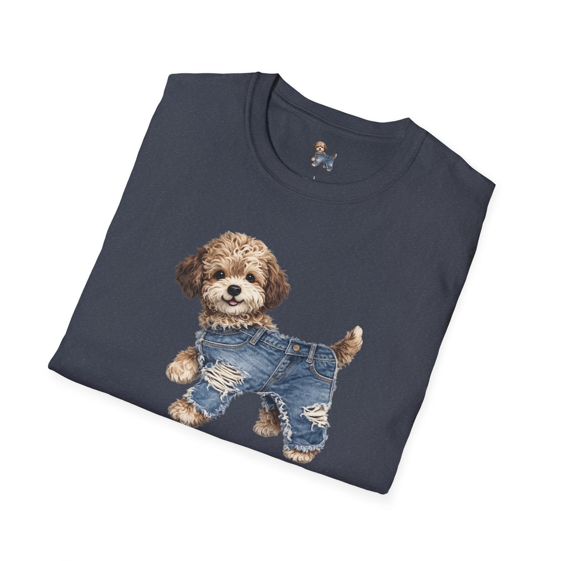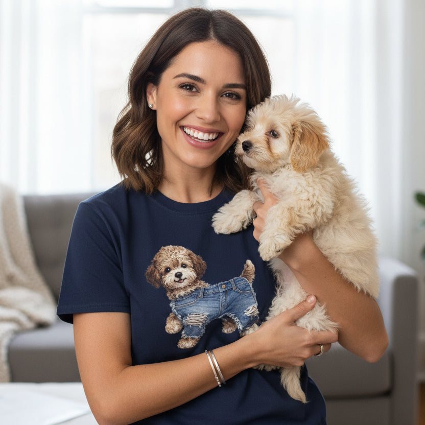 Cute Puppy in Denim T-Shirt — Adorable Dog Graphic Tee