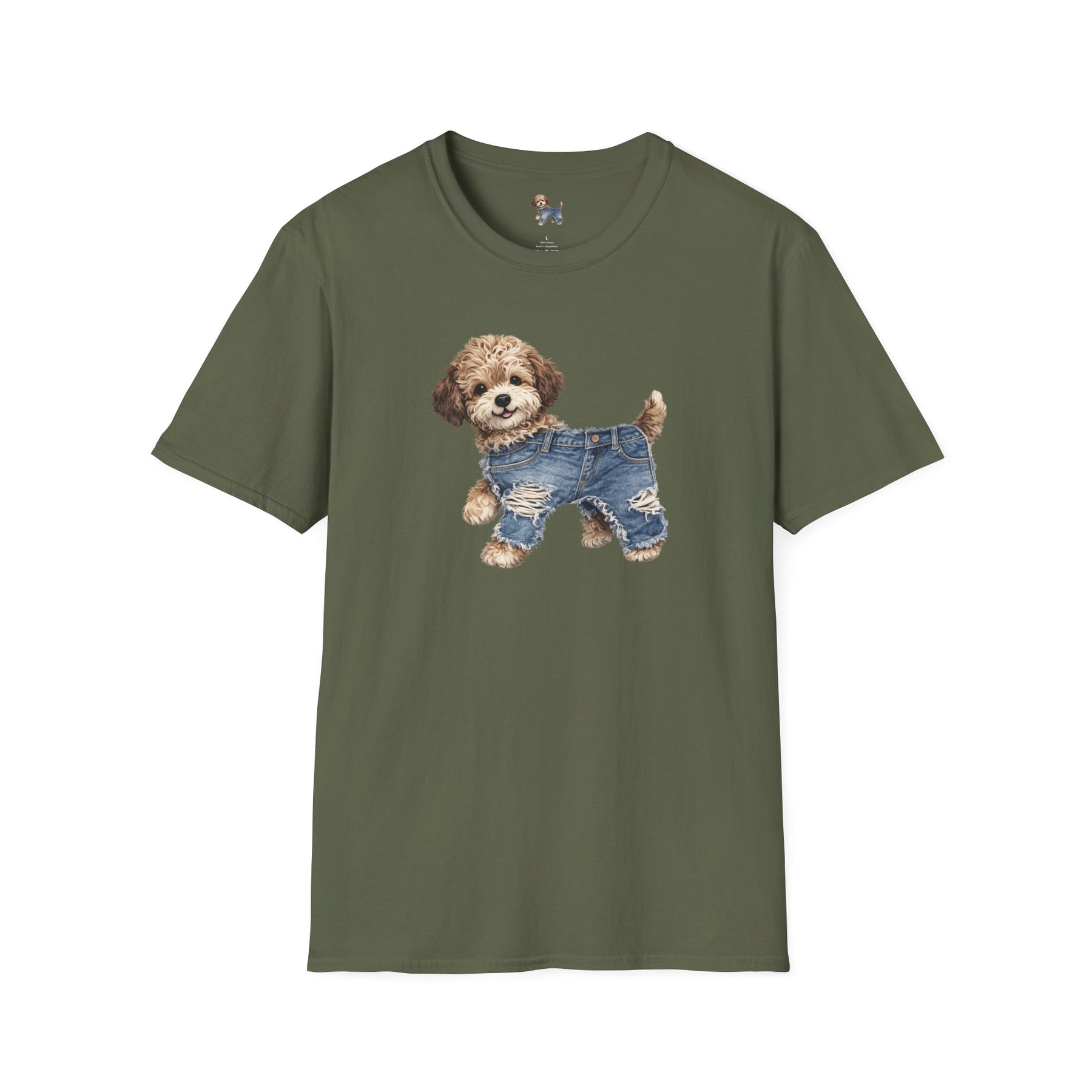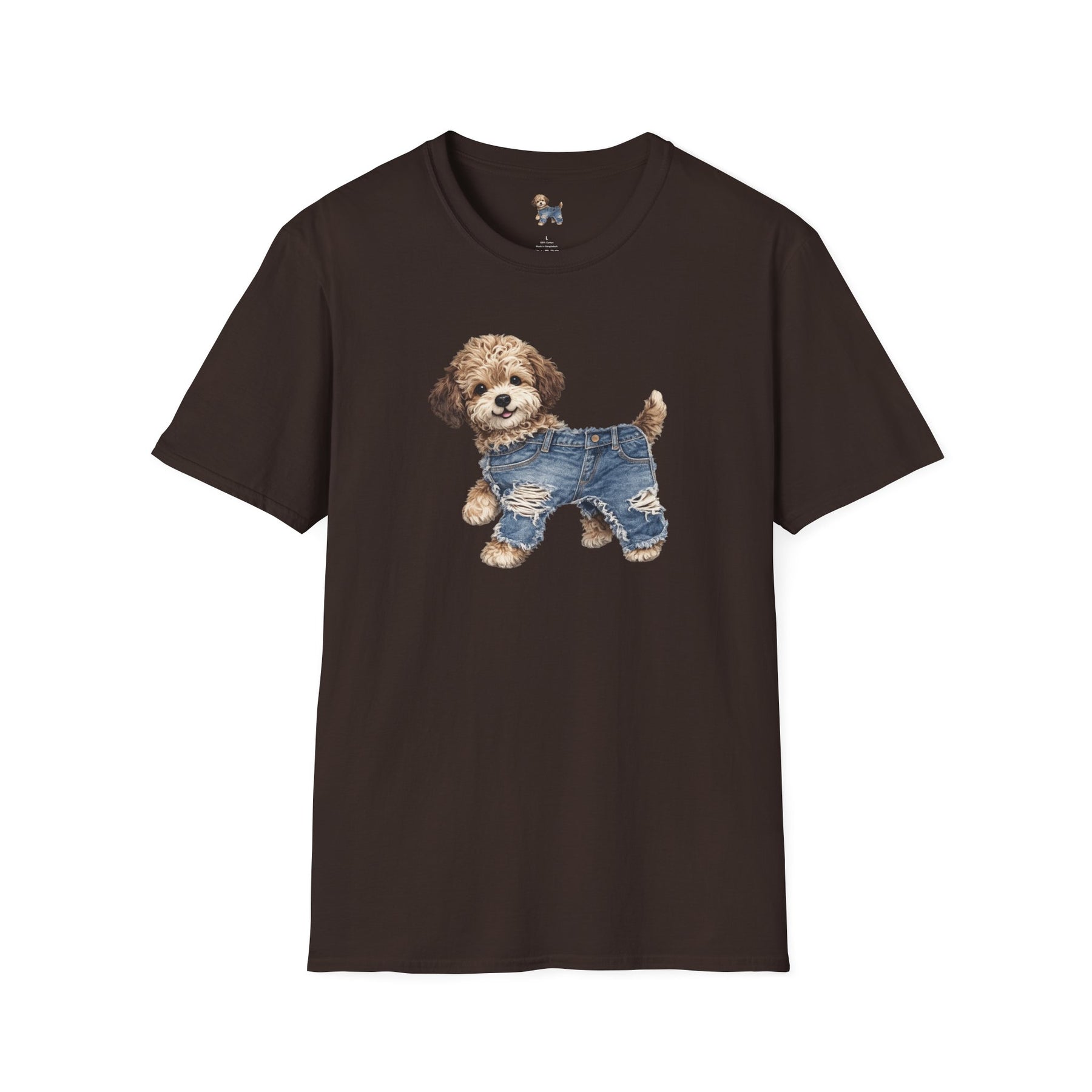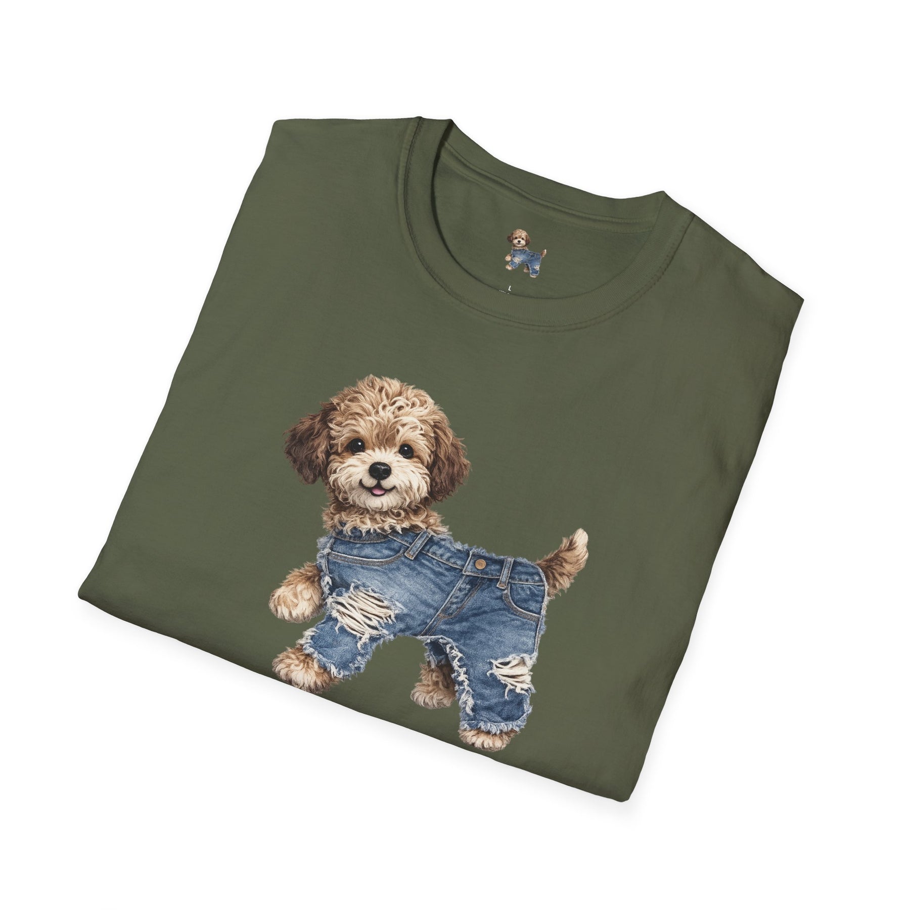 Cute Puppy in Denim T-Shirt — Adorable Dog Graphic Tee
