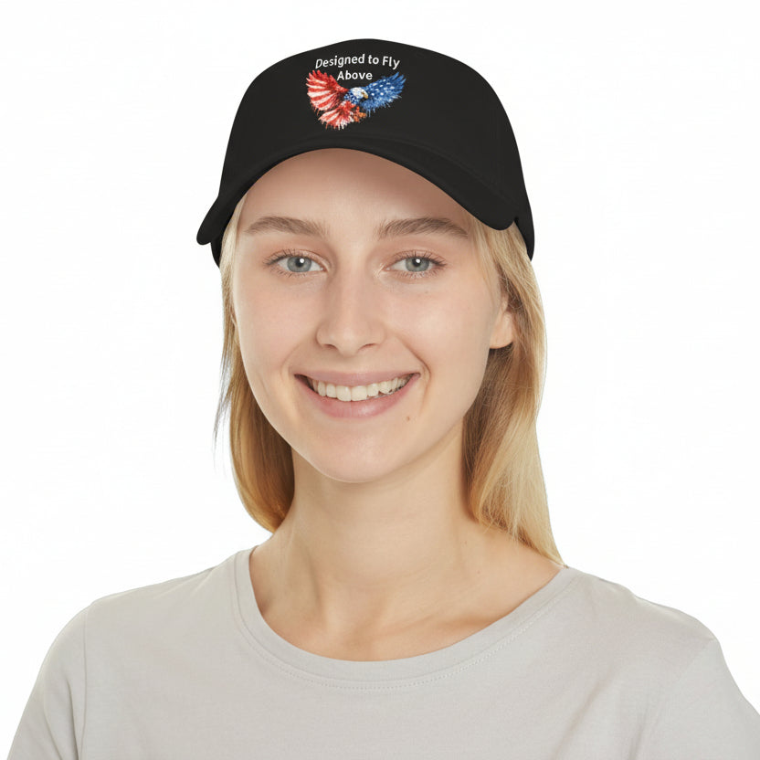 This low-profile baseball cap channels a quiet, Americana spirit—subtle and confident. Embroidered with a soaring American eagle and the phrase “Designed to fly above,” it settles low on your brow and feels like a personal emblem of independence. Wear it on cool morning drives, side-street coffee runs, or while scouting new trails—the cap adds a calm, vintage edge without shouting for attention. The soft cotton twill and unstructured fit let it mold to your head. The eagle motif reads like a nod to wide skies and steady direction, the kind of accessory that accompanies you when you choose to move with intention.