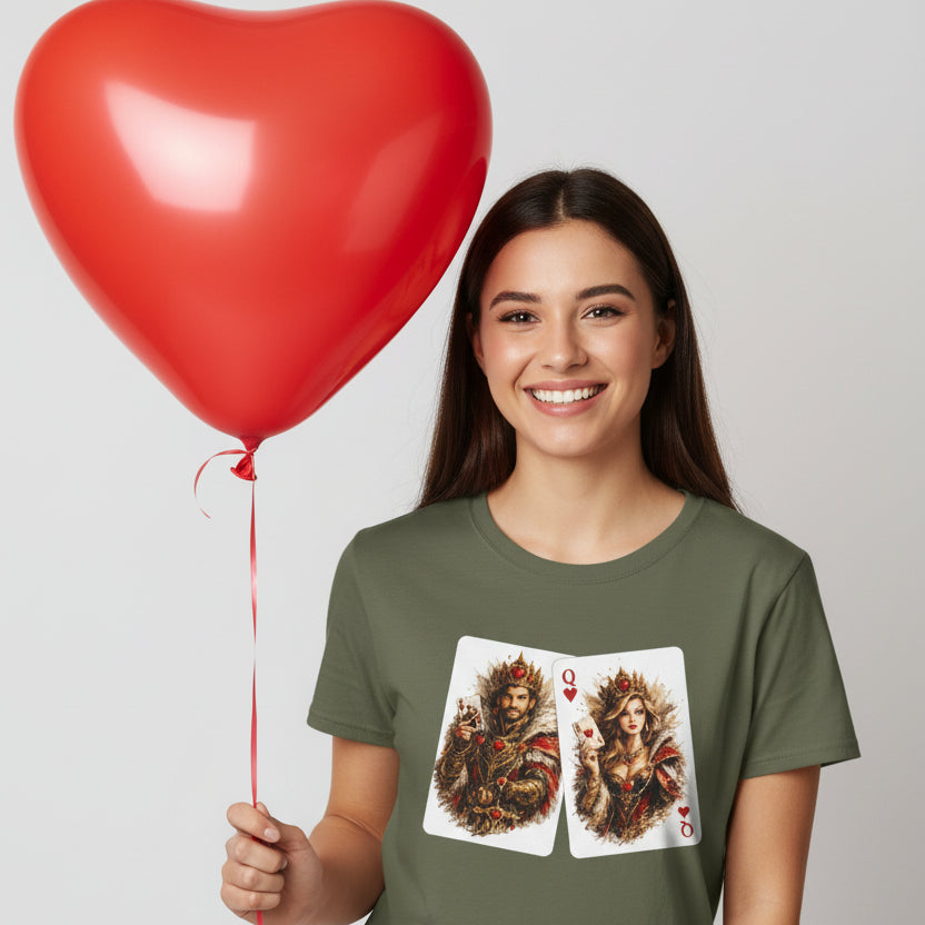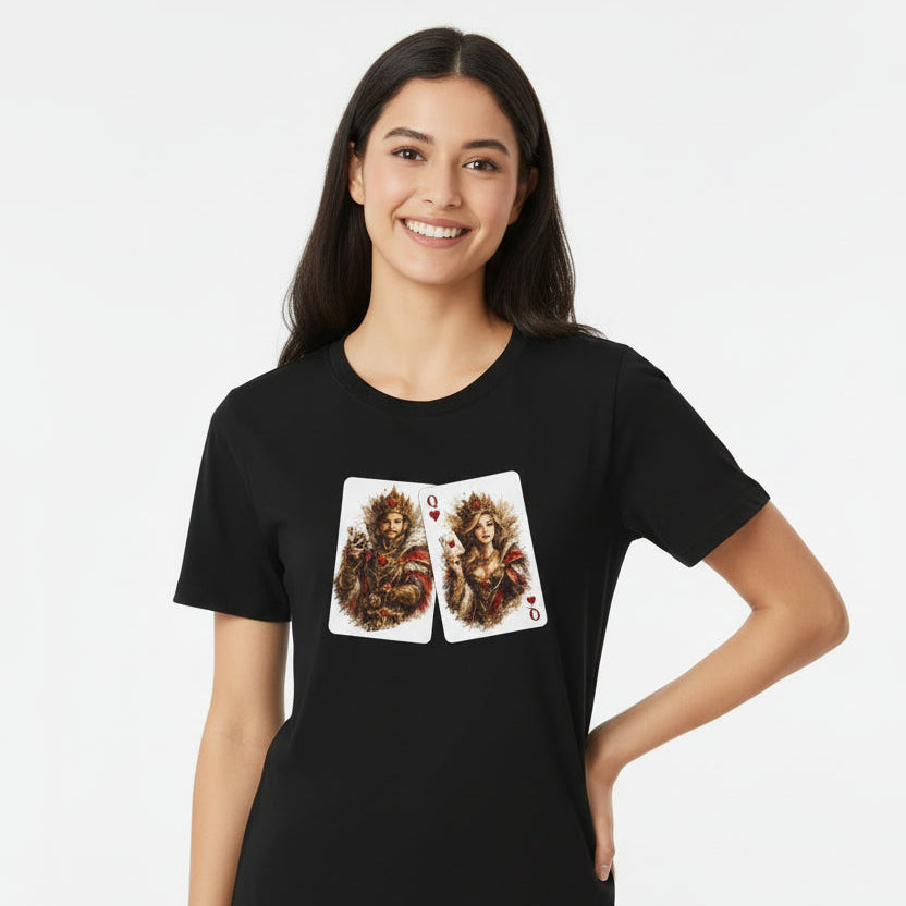 King & Queen Heart Playing Card T-Shirt — Regal Animal Art Tee