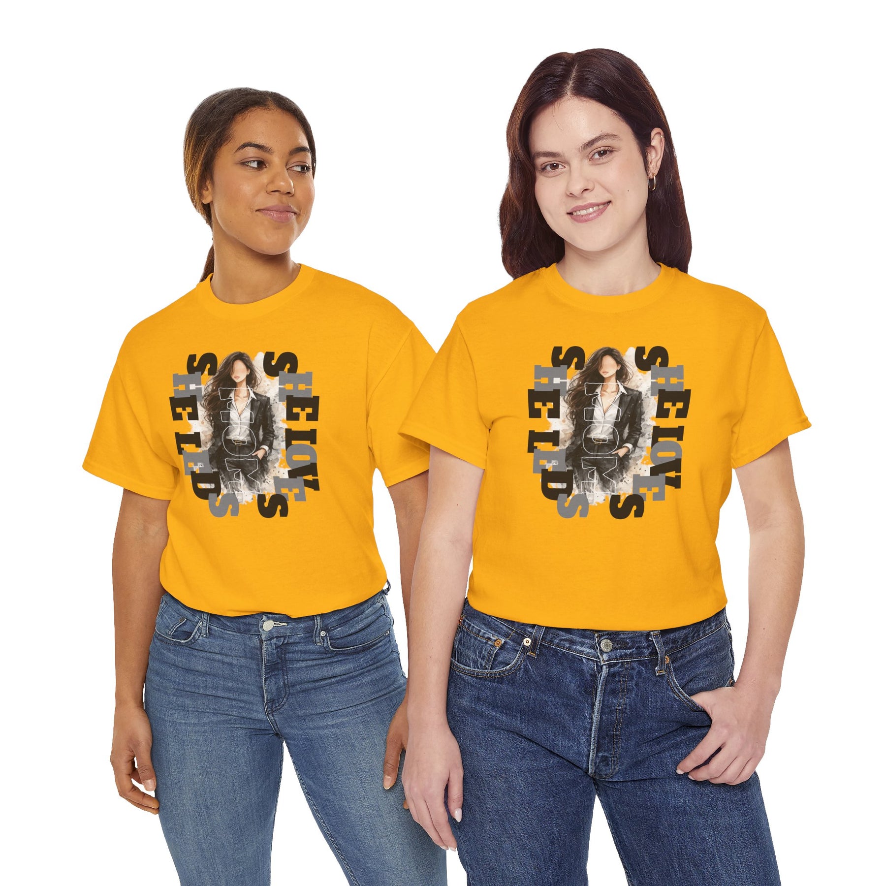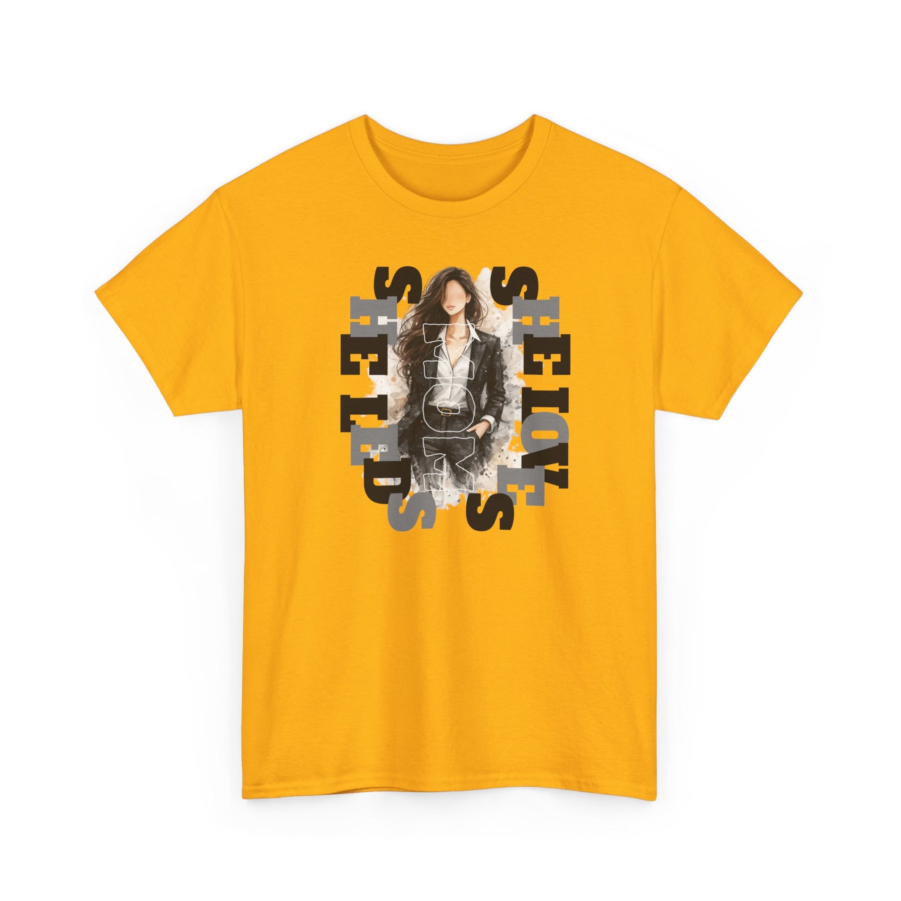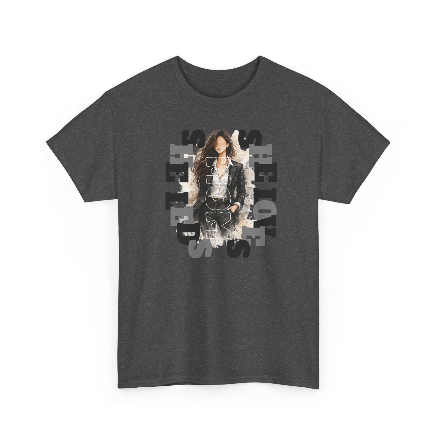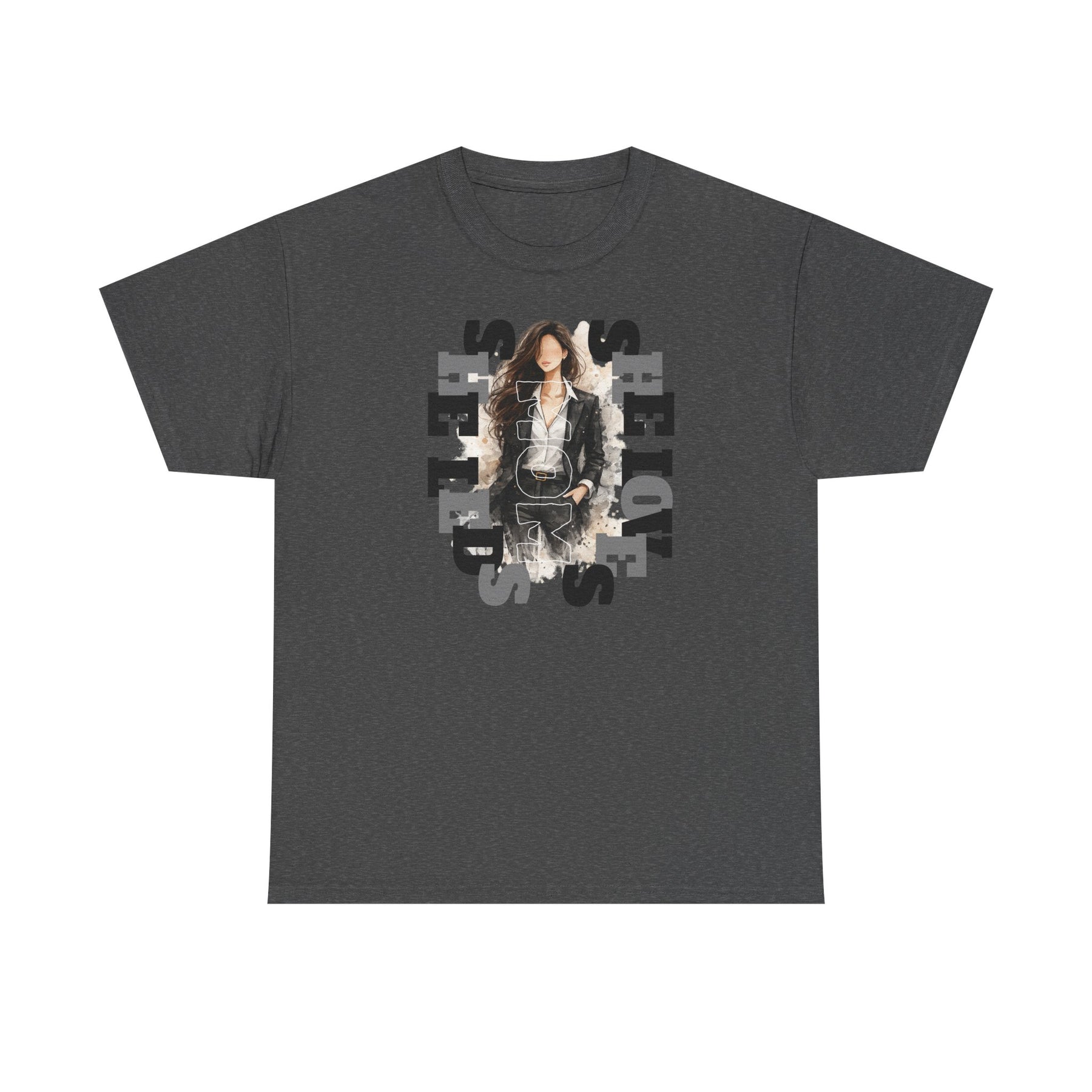 This classic crew-neck tee carries a quiet, confident energy. The front features a soft, painterly portrait of a woman in a leather jacket framed by the bold vertical phrases “She leads” and “She loves.” The image feels like a snapshot of someone who balances strength with warmth — a gentle rebel who moves through life with intention. Wear it on days when you want to show quiet authority without shouting. It layers easily under a jacket for evening meet-ups or stands alone with jeans for casual city walks. The relaxed fit and breathable cotton keep the focus on the message and the moment, so the wearer can move through work, coffee dates, or small gatherings feeling grounded and expressive.