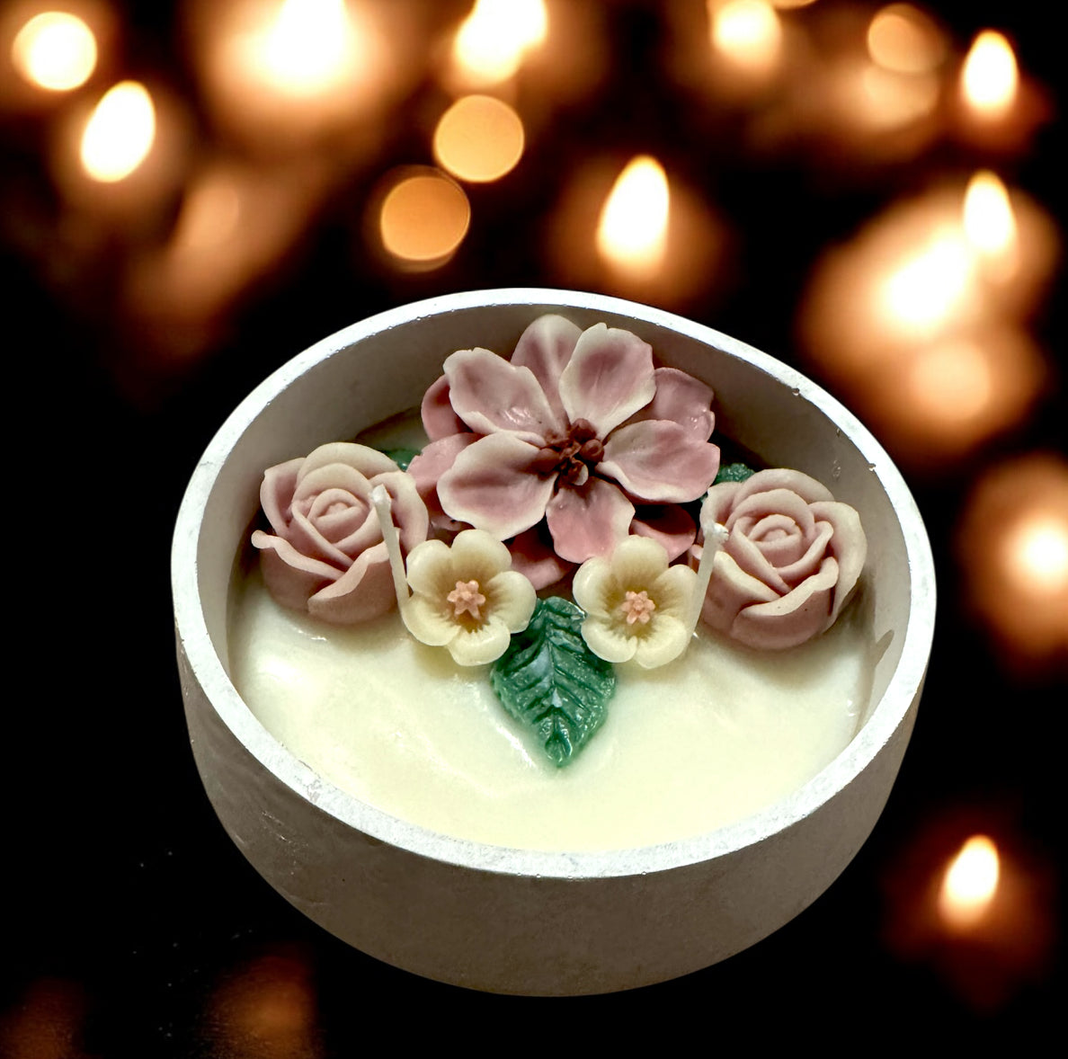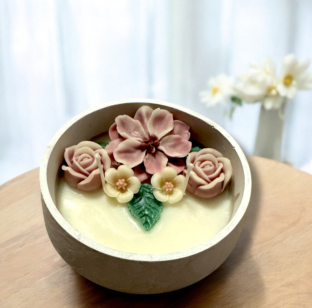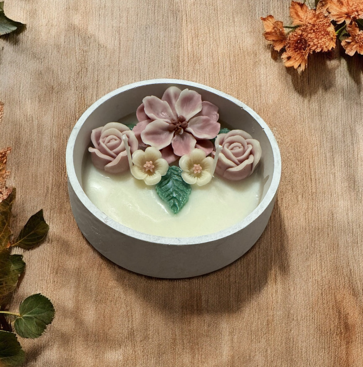 Looking for a unique handmade gift? This flower arrangement candle is set in a durable cement pot for a trendy, earthy vibe. The intricate floral details make it a beautiful keepsake even after the candle has burned, ready to be reused as a planter, pen holder, or small decor pot. Ideal for Mother’s Day, birthdays, or thank-you gifts.