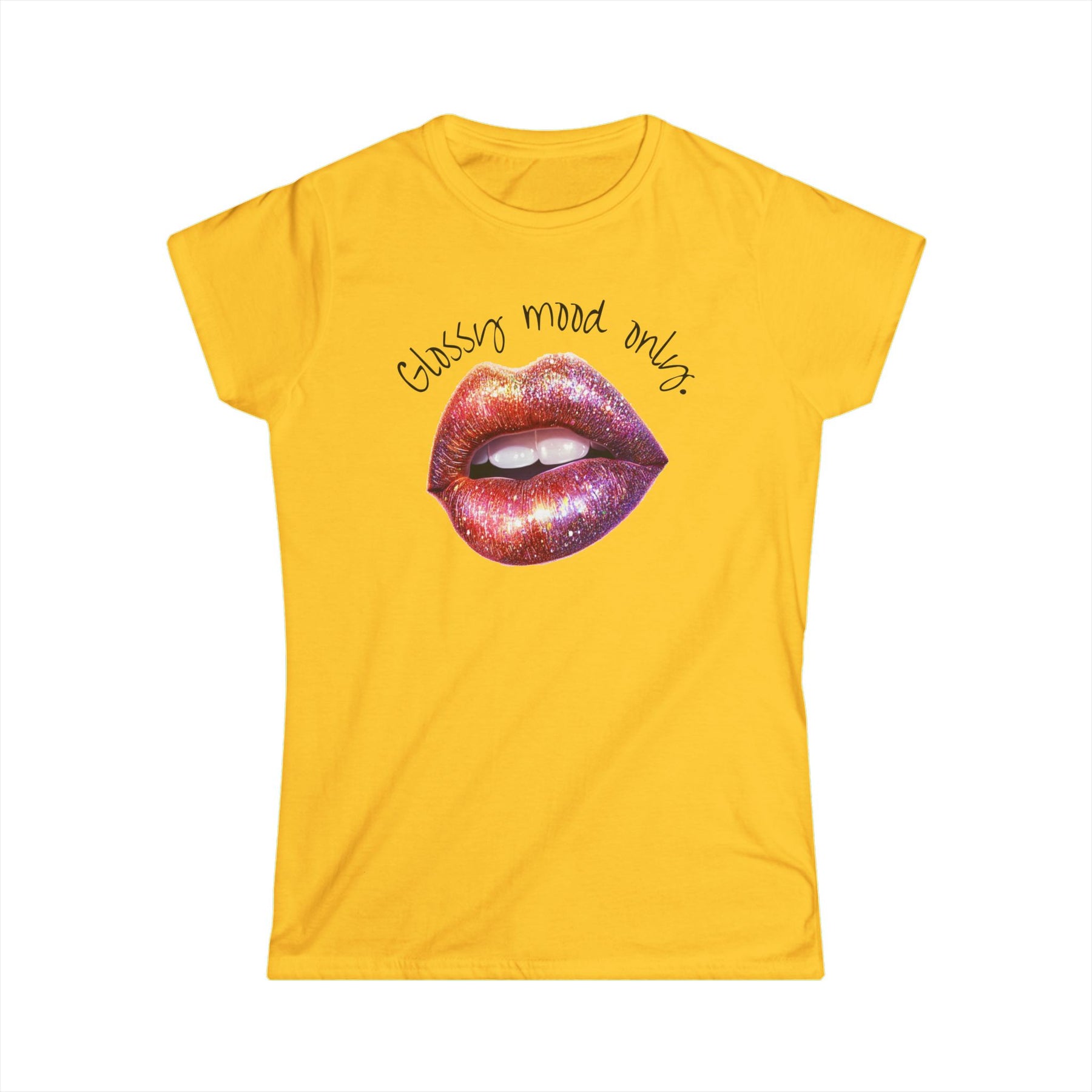 Glossy mood only — a tee that reads like a late-night photograph: high-contrast, bright highlights, and that slick sheen that catches attention without shouting. This semi-fitted women's tee lays smooth against the body and moves with you, keeping the glossy finish front and center whether you’re stepping into studio lights or grabbing coffee on a rain-slick street. It feels lightweight and breathable, with a ribbed collar that bounces back and shoulder tape that keeps the silhouette crisp after many wears. Wear it under a leather jacket, pair it with high-waisted jeans, or let it stand alone when you want an elevated everyday look that feels intentional and a little cinematic. Sized to run true, it keeps its shape wash after wash so the glossy mood stays genuine, not tired.