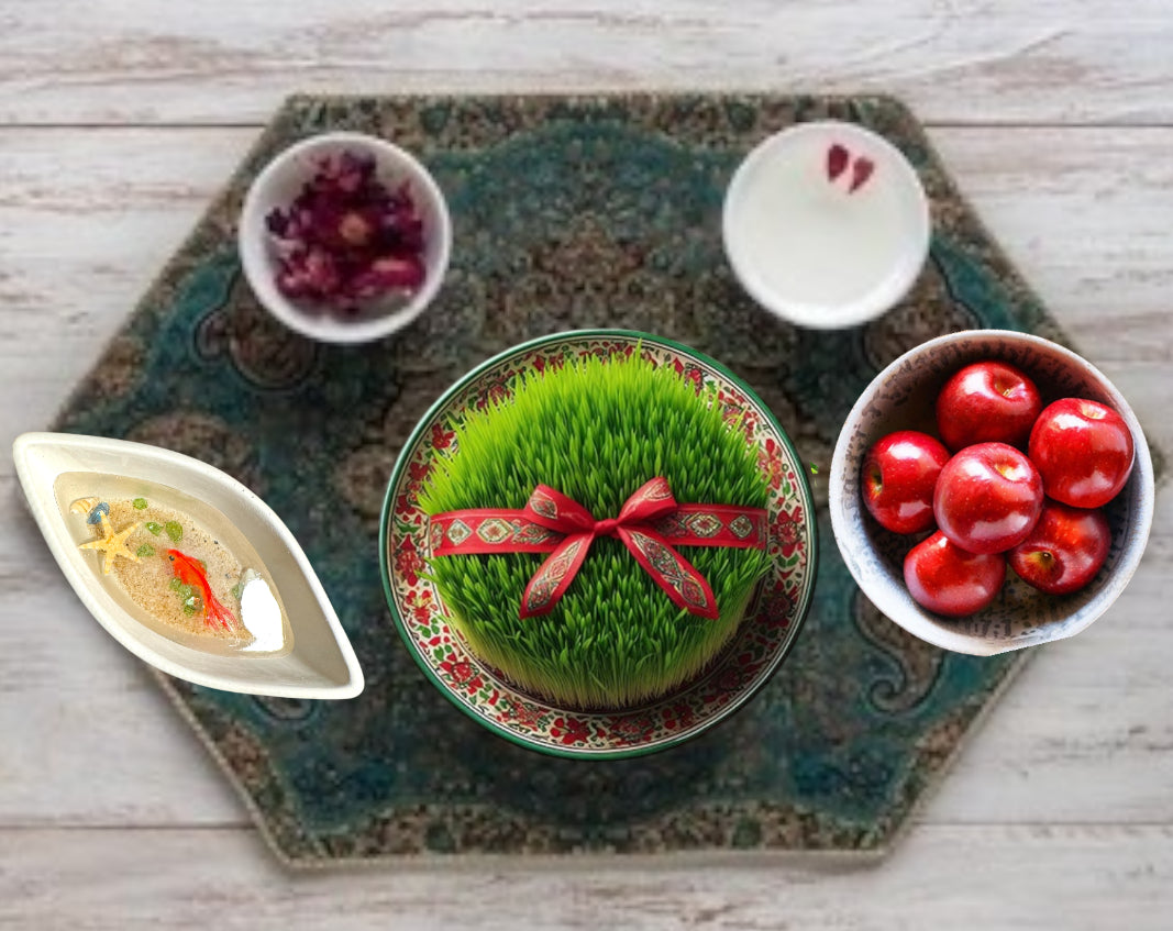 Hand-painted goldfish in resin pond art on an epoxy resin serving tray, featuring traditional Nowruz decor elements.