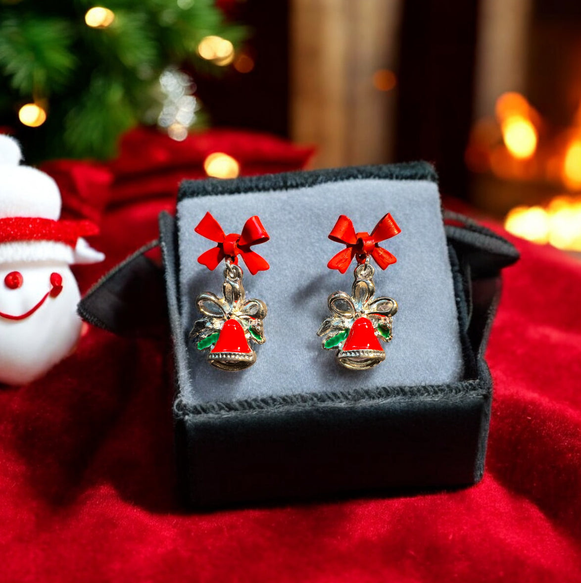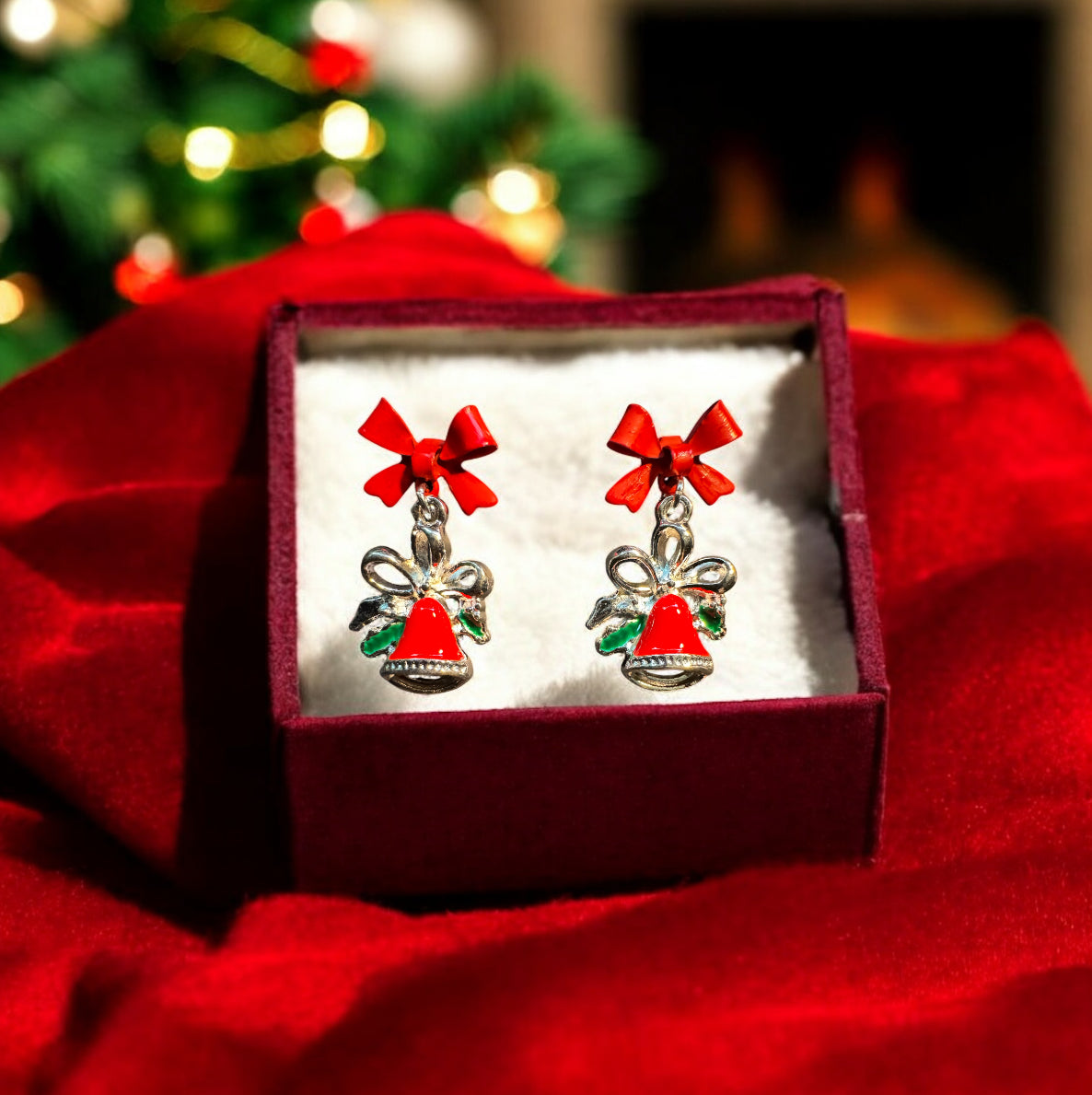 Ring the holiday spirit with these charming Christmas Bell Tie Bow Earrings! 🎀✨