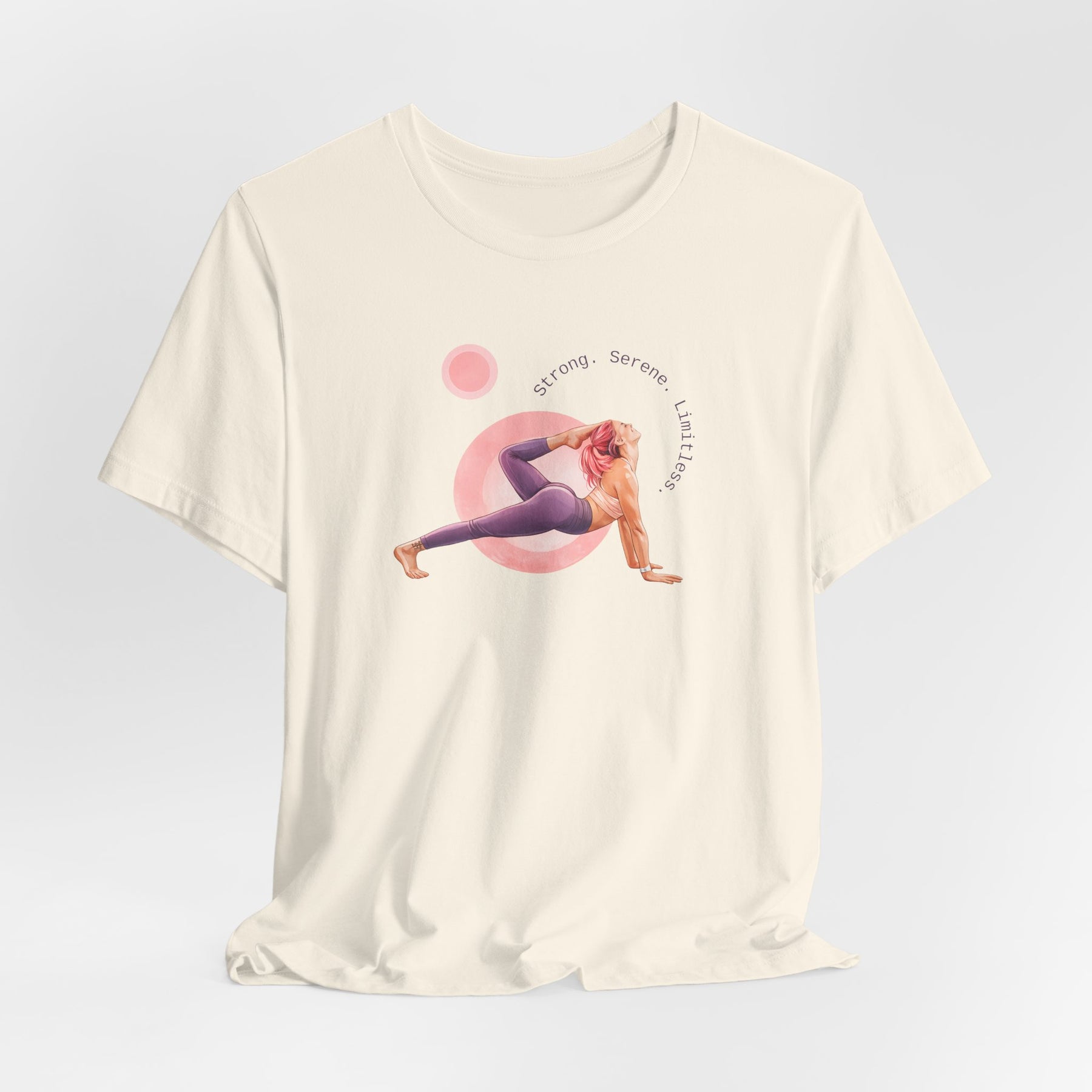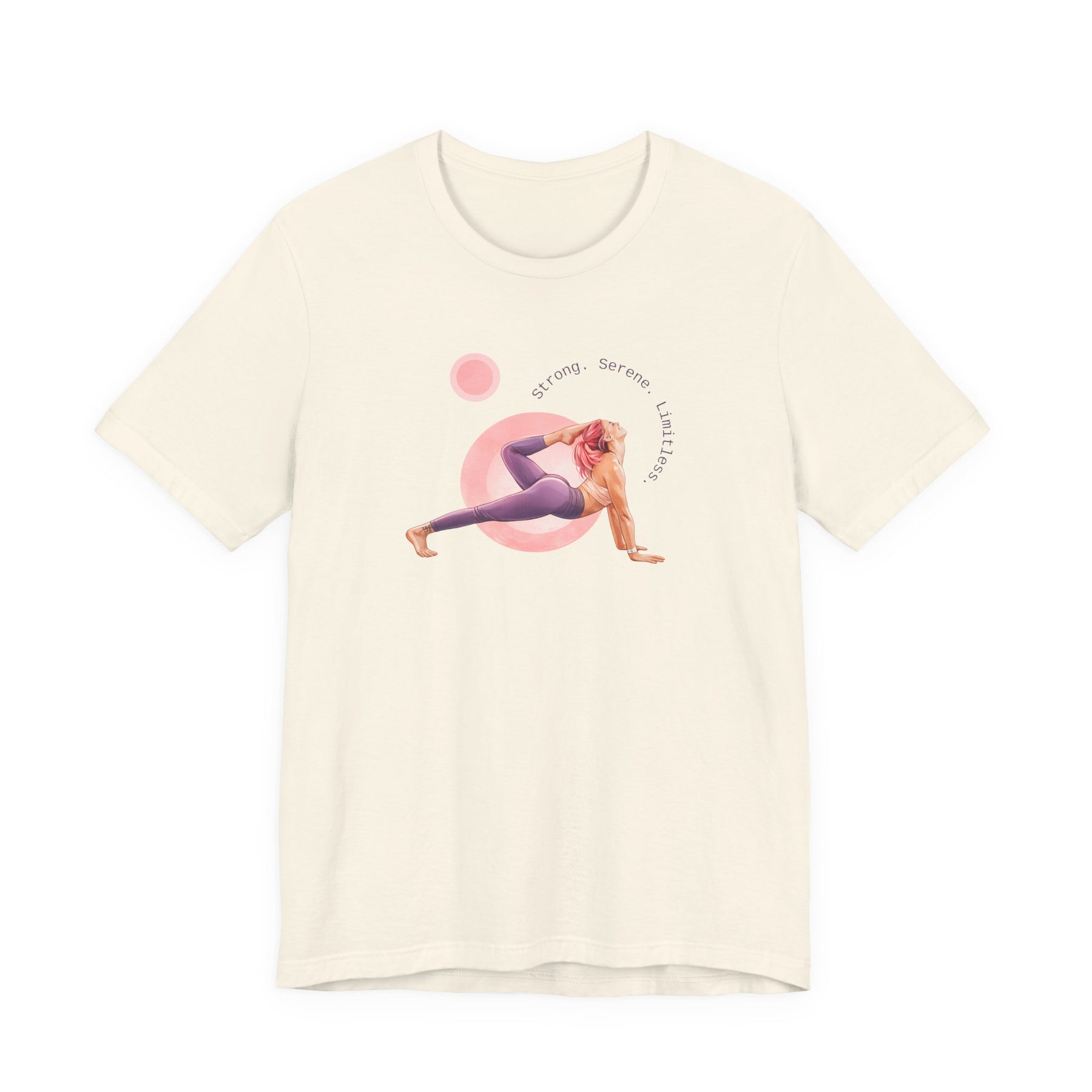 Strong. Serene. Limitless. This lightweight jersey tee carries a quiet confidence—clean lines, soft cotton, and a message that settles in your chest like steady breath. Wear it on morning runs, low-key nights out, or while sketching plans at a sunlit table. The retail fit keeps the silhouette neat without feeling tight. The ribbed collar and shoulder tape hold shape through repeated wears. Feels like calm focus: breathable Airlume cotton that moves with you and keeps the design crisp. For people who favor subtle strength—this tee slips easily into wardrobes that value comfort, durability, and a composed look that speaks for itself.